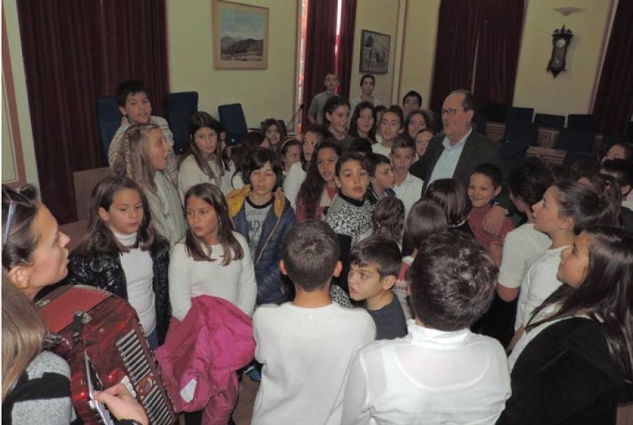 Το Δημαρχείο της Καλαμάτας επισκέφτηκαν 56 παιδιά από το 9ο Δημοτικό Σχολείο, μαζί με 3 εκπαιδευτικούς, και είπαν τα κάλαντα των Χριστουγέννων στον δήμαρχο... ειδικά διασκευασμένα για κείνον.