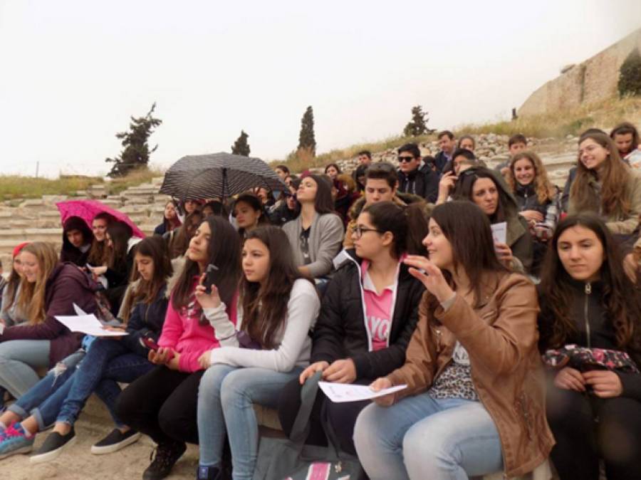 Στο αρχαίο θέατρο του Διονύσου, στο Ωδείο Ηρώδου του Αττικού και στην Ακρόπολη ξεναγήθηκε ομάδα του 1ου Γυμνασίου Μεσσήνης, από συμμαθητές τους του 1ου Γυμνασίου Γέρακα.