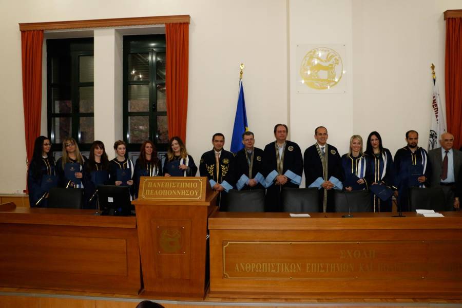 Στο χαιρετισμό του ο πρύτανης Κων. Μασσέλος επαίνεσε τους πτυχιούχους, αλλά και τους γονείς τους και τους προέτρεψε να συνεχίσουν τις σπουδές τους. Ο κοσμήτορας Αλέξιος Σαββίδης σχολίασε πως η Σχολή πλέον έχει ανανεωμένη Βιβλιοθήκη, στην οποία υπάρχουν όλες οι πτυχιακές εργασίες των αποφοίτων και σε ψηφιακή μορφή. Ο πρόεδρος του Τμήματος Φιλολογίας Ανδρέας Μαρκαντωνάτος είπε πως αυτή η στιγμή είναι το τέλος μιας μακρόχρονης και κοπιώδους πορείας. Ο πρόεδρος του Τμήματος Ιστορίας Νίκος Ζαχαριάς εξέφρασε την πεποίθηση πως η σημερινή γενιά είναι καλύτερα εφοδιασμένη από τις προηγούμενες και πως θα προσφέρει περισσότερα στη χώρα μας.