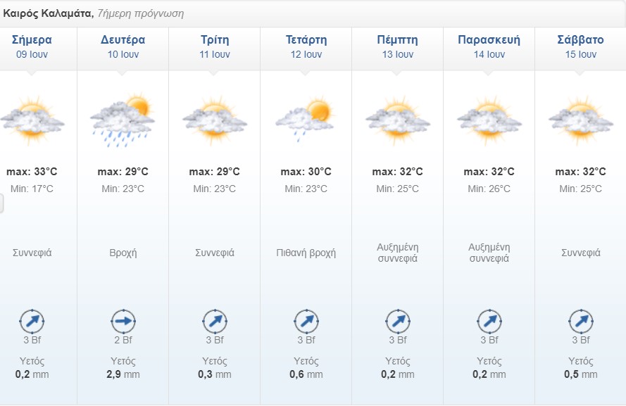 Ο καιρός στην Καλαμάτα μέσα από τον πίνακα του freemeteo: