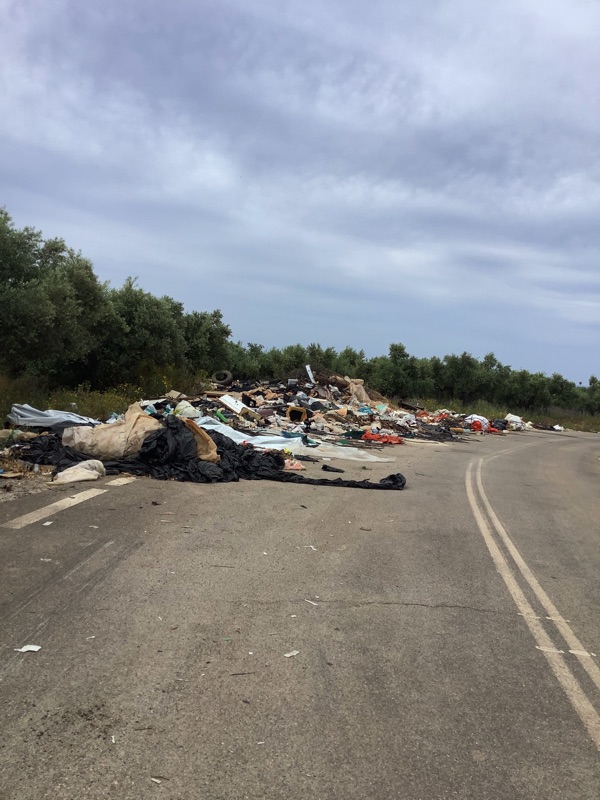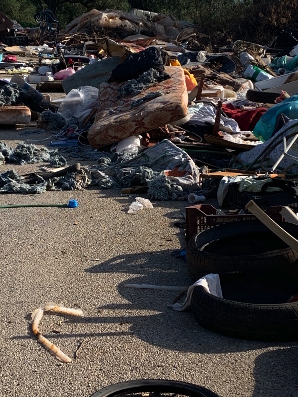 Σκουπίδια κάθε λογής εναποτίθενται εδώ και μήνες στην περιοχή αυτή και πλέον έχει καλυφθεί το μισό οδόστρωμα, ενώ εύλογα υπάρχουν διαμαρτυρίες από κατοίκους και από ιδιοκτήτες κτημάτων.