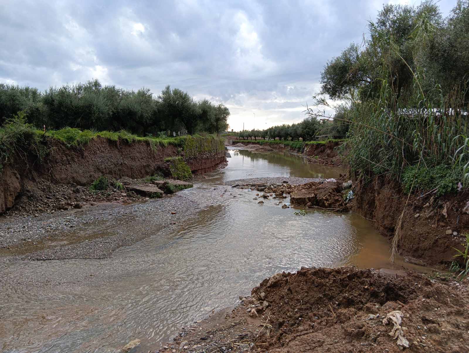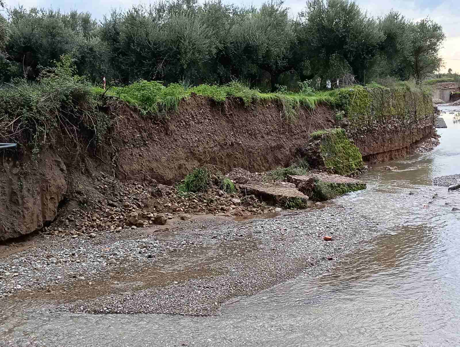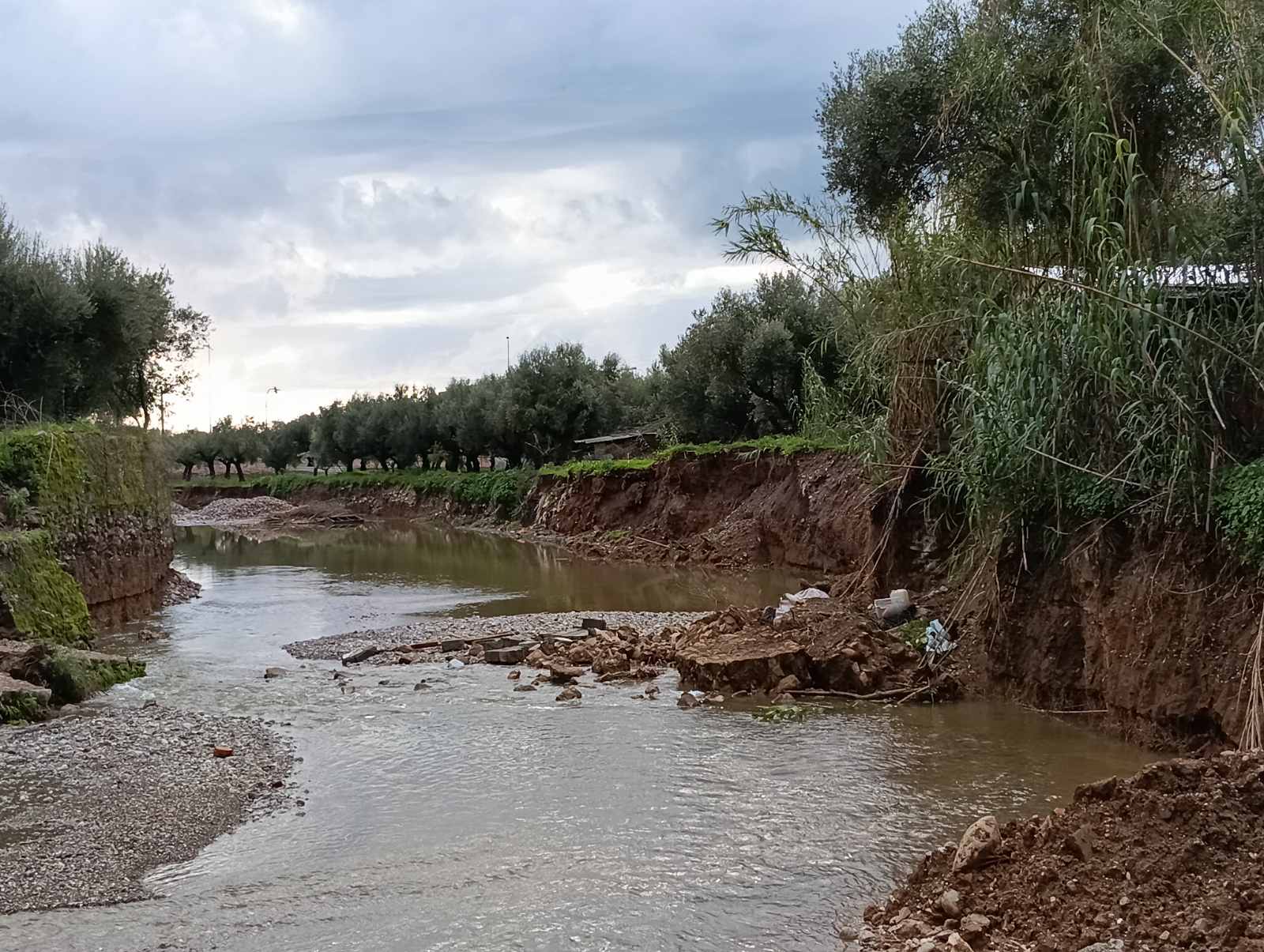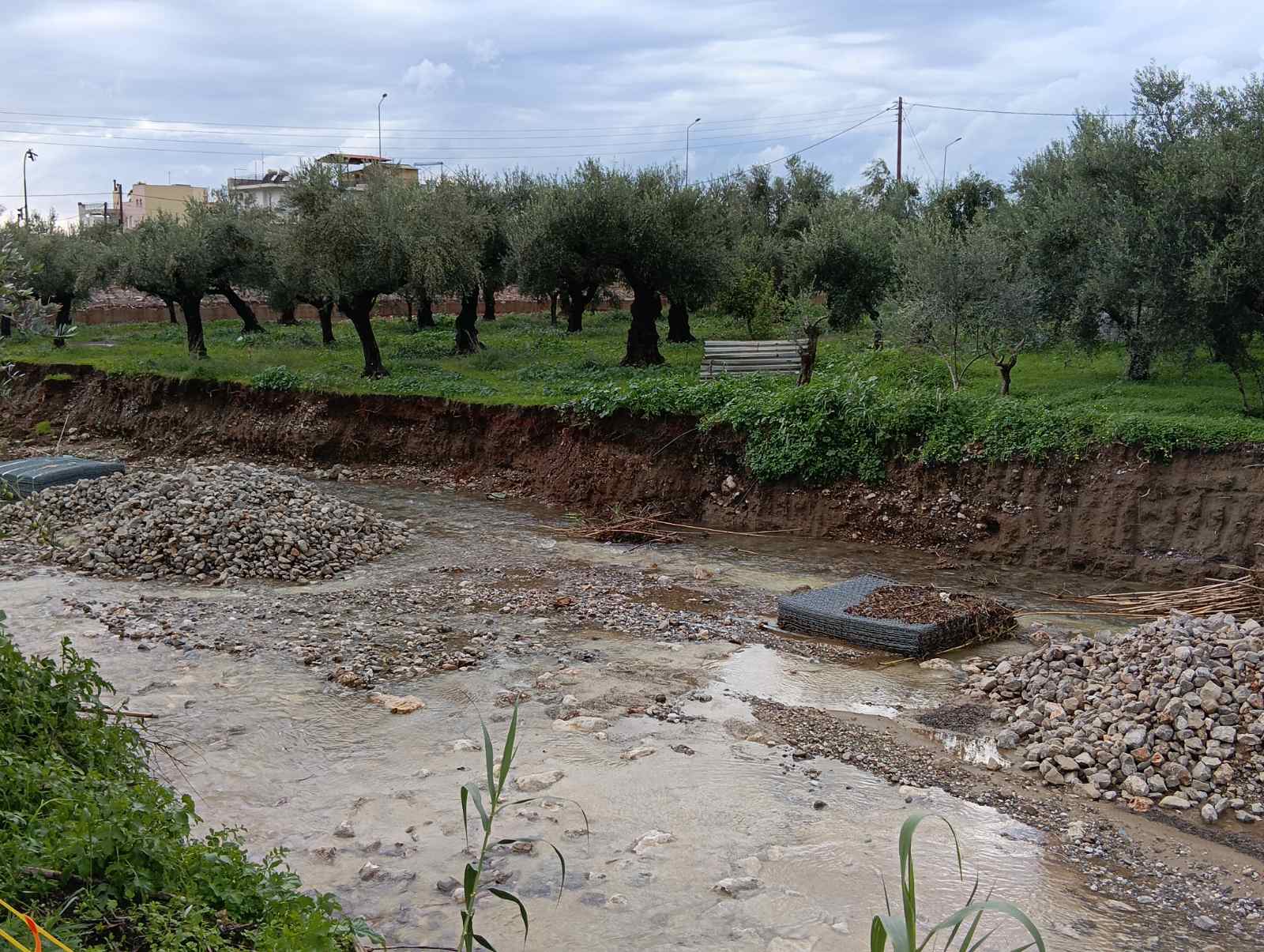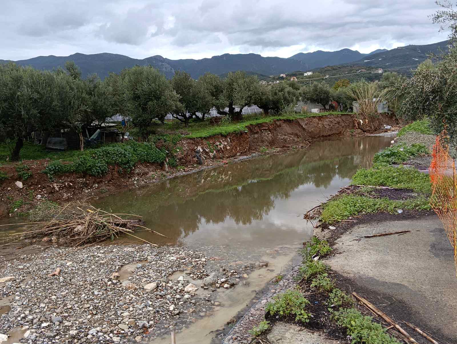 Τα νερά του ρέματος “έφαγαν” κυρίως κτήματα και γκρέμισαν τα πρανή τους, στη δυτική πλευρά, απέναντι από το ελαιοτριβείο του Αγροτικού Συνεταιρισμού, ενώ προκάλεσαν ζημιές και στην πλευρά του ελαιοτριβείου. Μάλιστα, από τις ζημιές κινδυνεύει να βρεθεί στο ρέμα μια αποθήκη με εργαλεία.