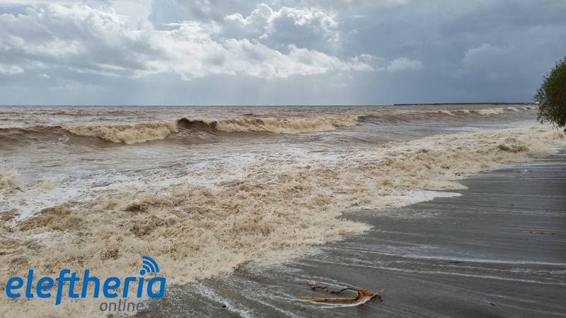 Την ίδια στιγμή, οι ισχυροί άνεμοι που συνοδεύουν την κακοκαιρία προκάλεσαν έντονο κυματισμό, επιδεινώνοντας την κατάσταση. Σε αρκετά σημεία της παραλιακής ζώνης, τα κύματα ξέβρασαν ξύλα, κλαδιά και διάφορα φερτά υλικά, συνθέτοντας ένα σκηνικό που θυμίζει περισσότερο χειμερινή καταιγίδα παρά ανοιξιάτικη περίοδο.