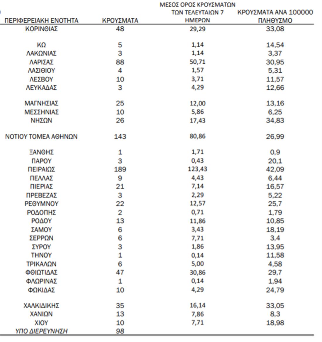 Η γεωγραφική κατανομή των κρουσμάτων είναι η εξής:
