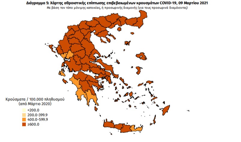 Με βάση τα επιβεβαιωμένα κρούσματα των τελευταίων 7 ημερών, 74 θεωρούνται σχετιζόμενα με ταξίδι από το εξωτερικό και 2.769 είναι σχετιζόμενα με ήδη γνωστό κρούσμα.