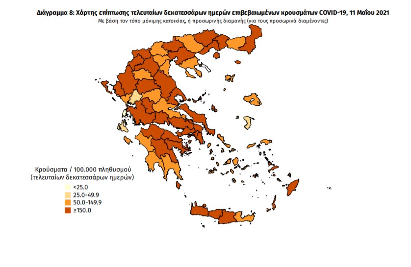 Με βάση τα επιβεβαιωμένα κρούσματα των τελευταίων 7 ημερών, 59 θεωρούνται σχετιζόμενα με ταξίδι από το εξωτερικό και 2.617 είναι σχετιζόμενα με ήδη γνωστό κρούσμα.