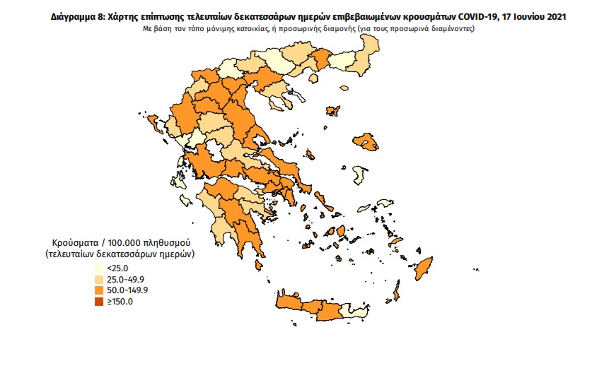 Με βάση τα επιβεβαιωμένα κρούσματα των τελευταίων 7 ημερών, 26 θεωρούνται σχετιζόμενα με ταξίδι από το εξωτερικό και 1.015 είναι σχετιζόμενα με ήδη γνωστό κρούσμα.