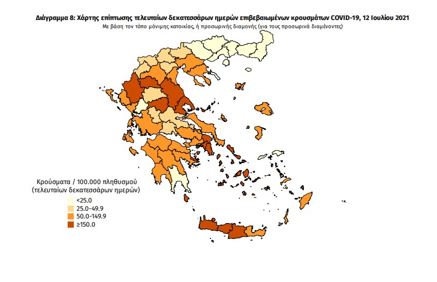 Με βάση τα επιβεβαιωμένα κρούσματα των τελευταίων 7 ημερών, 156 θεωρούνται σχετιζόμενα με ταξίδι από το εξωτερικό και 1.874 είναι σχετιζόμενα με ήδη γνωστό κρούσμα.