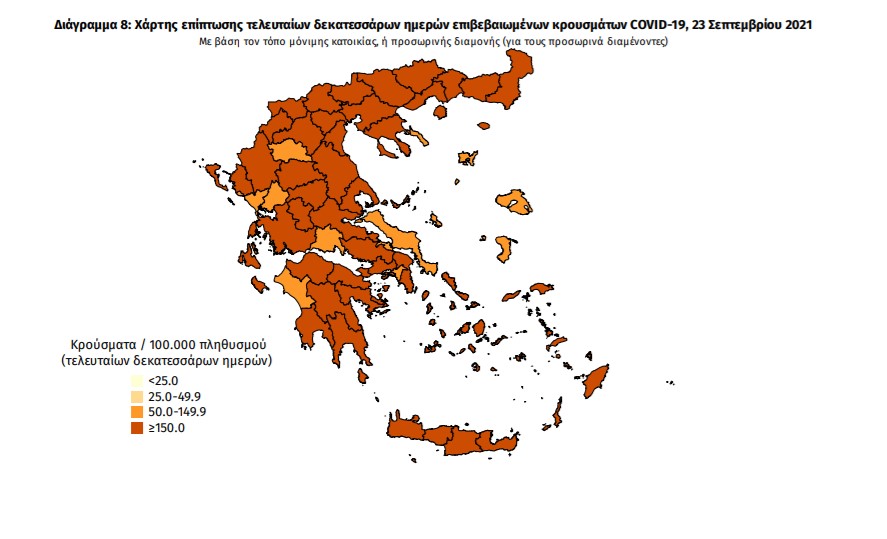 Με βάση τα επιβεβαιωμένα κρούσματα των τελευταίων 7 ημερών, 137 θεωρούνται σχετιζόμενα με ταξίδι από το εξωτερικό και 3.502 είναι σχετιζόμενα με ήδη γνωστό κρούσμα.