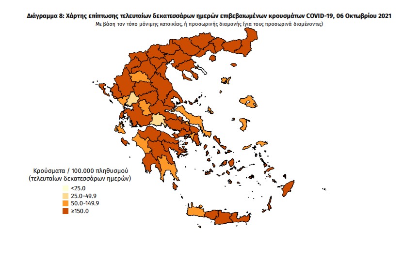 Οι νέοι θάνατοι ασθενών με COVID-19 είναι 21, ενώ από την έναρξη της επιδημίας έχουν καταγραφεί συνολικά 15.012 θάνατοι. Το 95.4% είχε υποκείμενο νόσημα ή/και ηλικία 70 ετών και άνω.