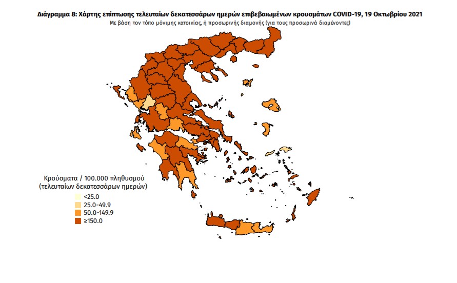 Με βάση τα επιβεβαιωμένα κρούσματα των τελευταίων 7 ημερών, 124 θεωρούνται σχετιζόμενα με ταξίδι από το εξωτερικό και 2.144 είναι σχετιζόμενα με ήδη γνωστό κρούσμα.
