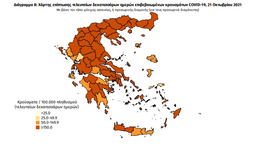 Με βάση τα επιβεβαιωμένα κρούσματα των τελευταίων 7 ημερών, 144 θεωρούνται σχετιζόμενα με ταξίδι από το εξωτερικό και 2.646 είναι σχετιζόμενα με ήδη γνωστό κρούσμα.