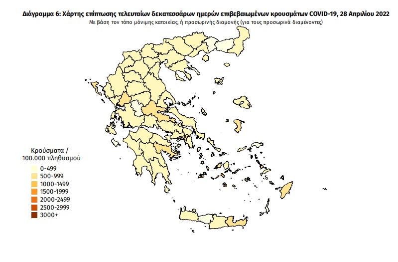 Οι νέοι θάνατοι ασθενών με Covid-19 είναι 48, ενώ από την έναρξη της επιδημίας έχουν καταγραφεί συνολικά 29.073 θάνατοι. Το 95.5% είχε υποκείμενο νόσημα ή/και ηλικία 70 ετών και άνω.