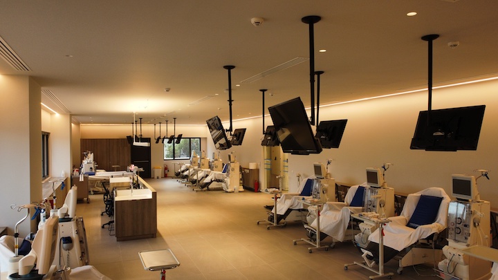 Η νέα μονάδα mesogeios στεγάζεται σε κτηριακή εγκατάσταση με βιοκληματικά δομημένο περιβάλλον και άνετο ιδιωτικό πάρκινγκ. Η υπερσύγχρονη αίθουσα αιμοκάθαρσης, ο τεχνολογικός εξοπλισμός τελευταίας τεχνολογίας σε όλα τα απαραίτητα συστήματα και το εξαιρετικής αισθητικής περιβάλλον των χώρων αναμονής εξασφαλίζουν την ασφάλεια και την άνεση των ασθενών και των συνοδών τους.