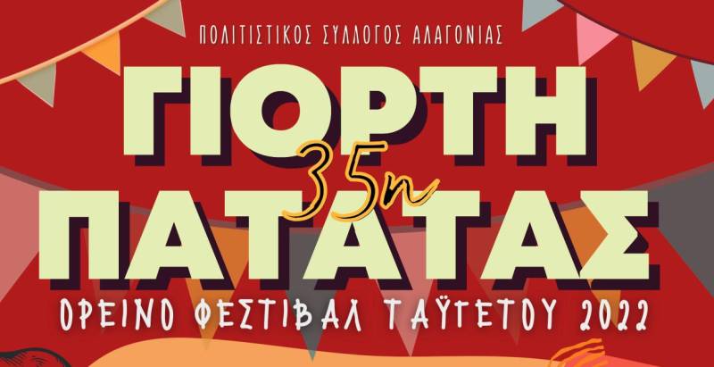 Η 35η Γιορτή Πατάτας θα διοργανωθεί το Σάββατο 20 Αυγούστου στην Αλαγονία, στο πλαίσιο του Ορεινού Φεστιβάλ Ταϋγέτου.