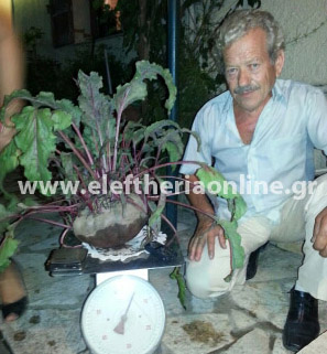 Ο ερασιτέχνης αγρότης Ευστάθιος Αδαμόπουλος από την Οιχαλία καλλιεργεί παντζάρια και όπως βλέπετε σε χωράφι του προέκυψε ένα παντζάρι – γίγας βάρους 4,36 κιλών.