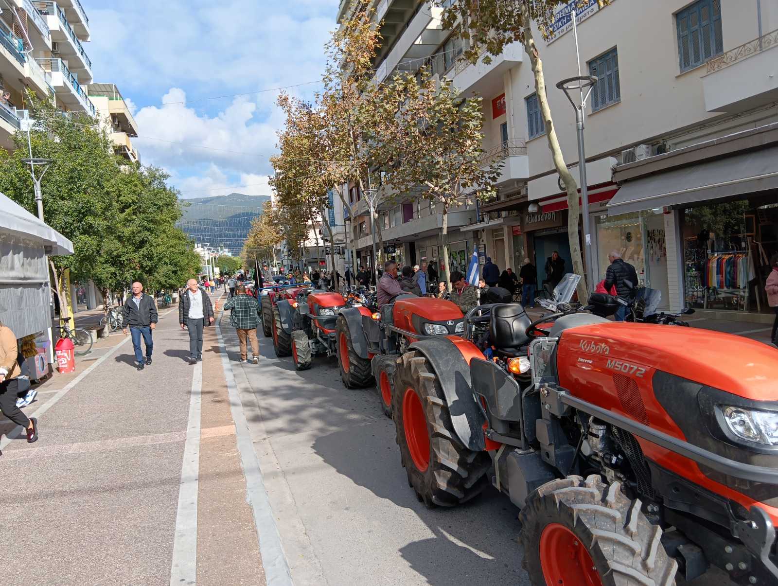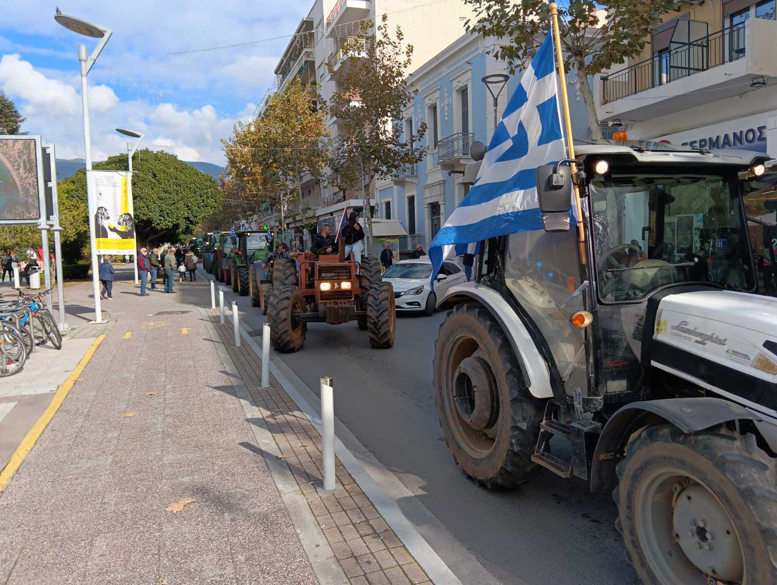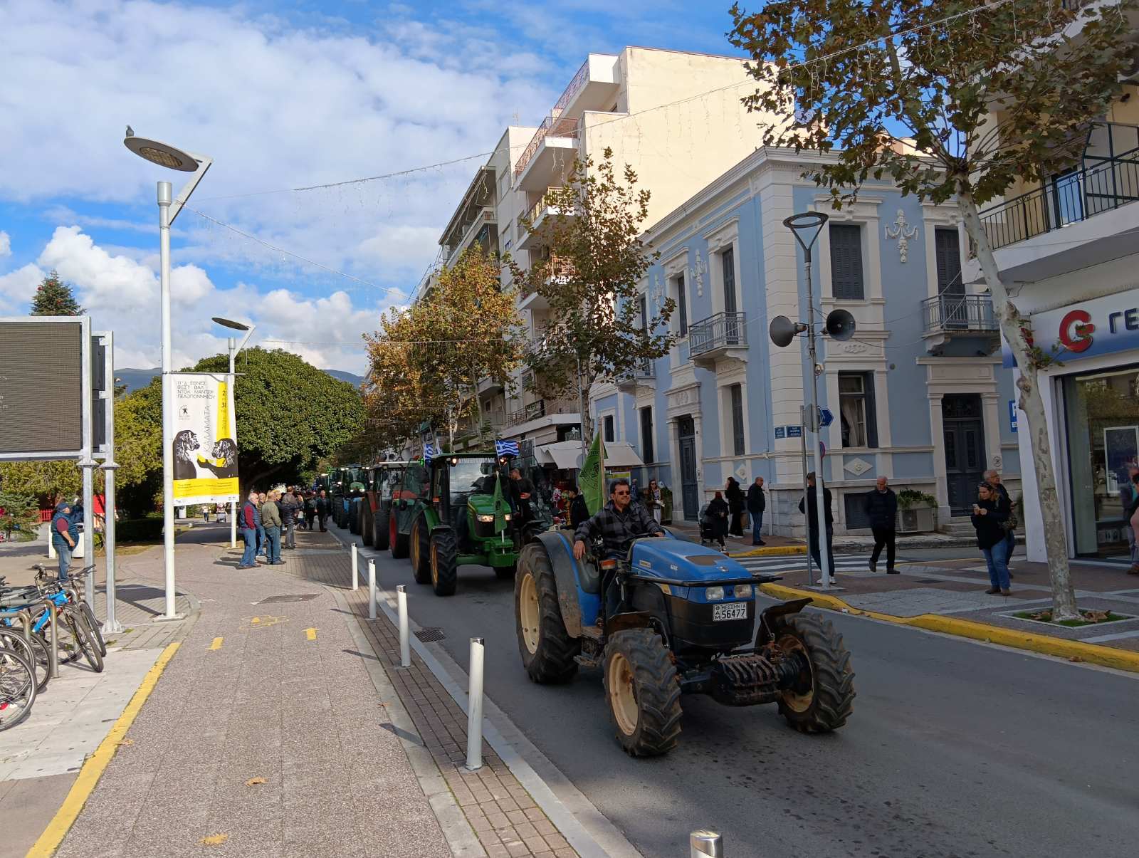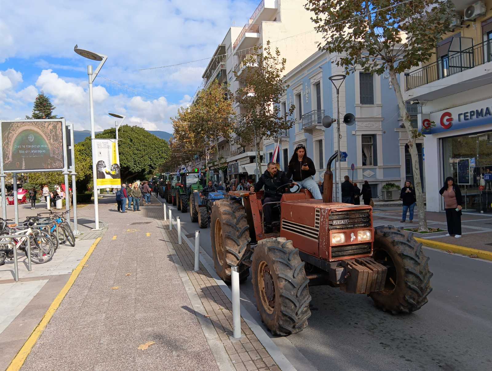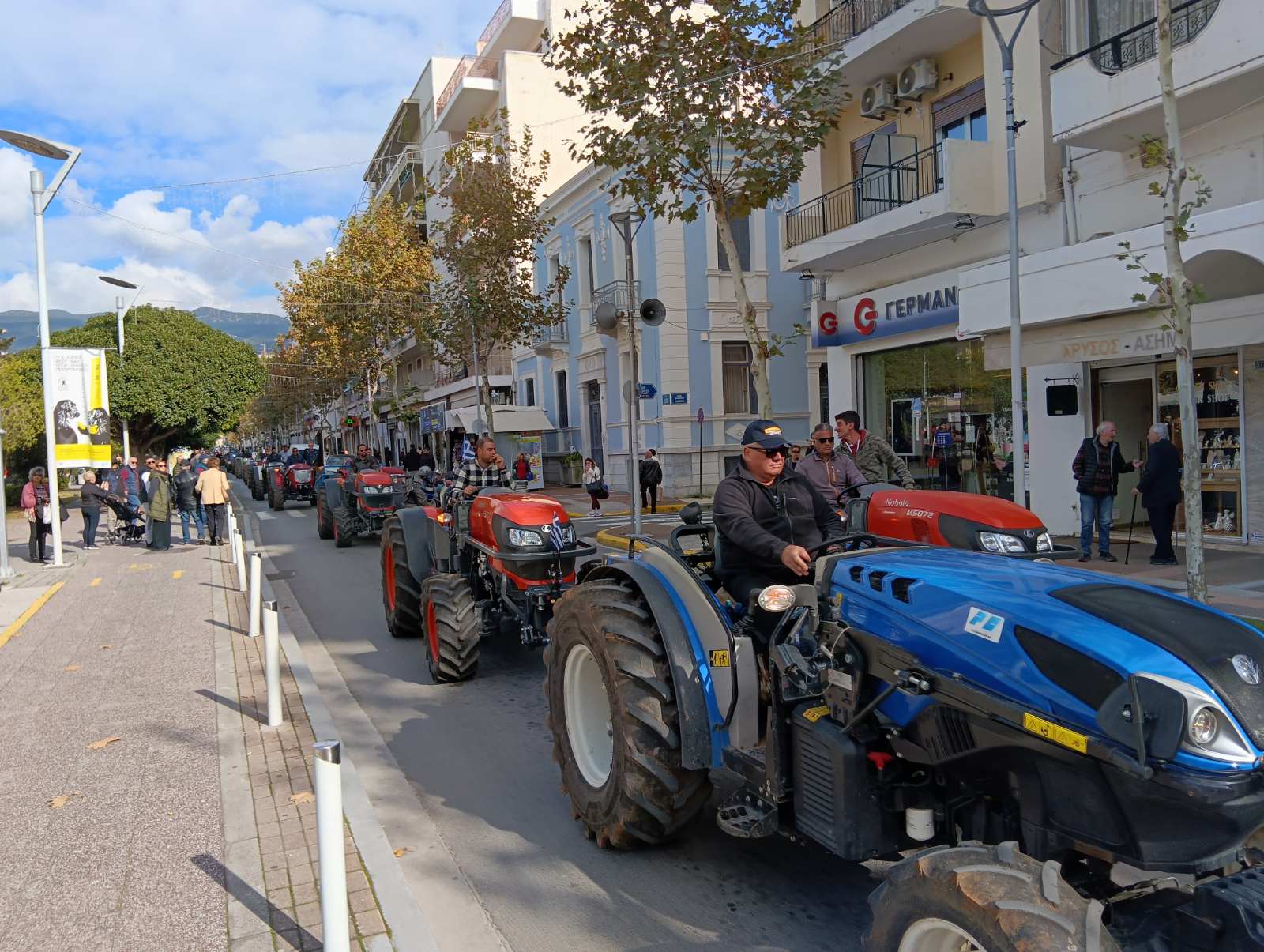 Δεκάδες τρακτέρ παρατάχθηκαν στην οδό Αριστομένους στην κεντρική πλατεία και στη συνέχεια συνέχισαν την πορεία τους προς το Διοικητήριο της Περιφερειακής Ενότητας Μεσσηνίας στην οδό Κρήτης.