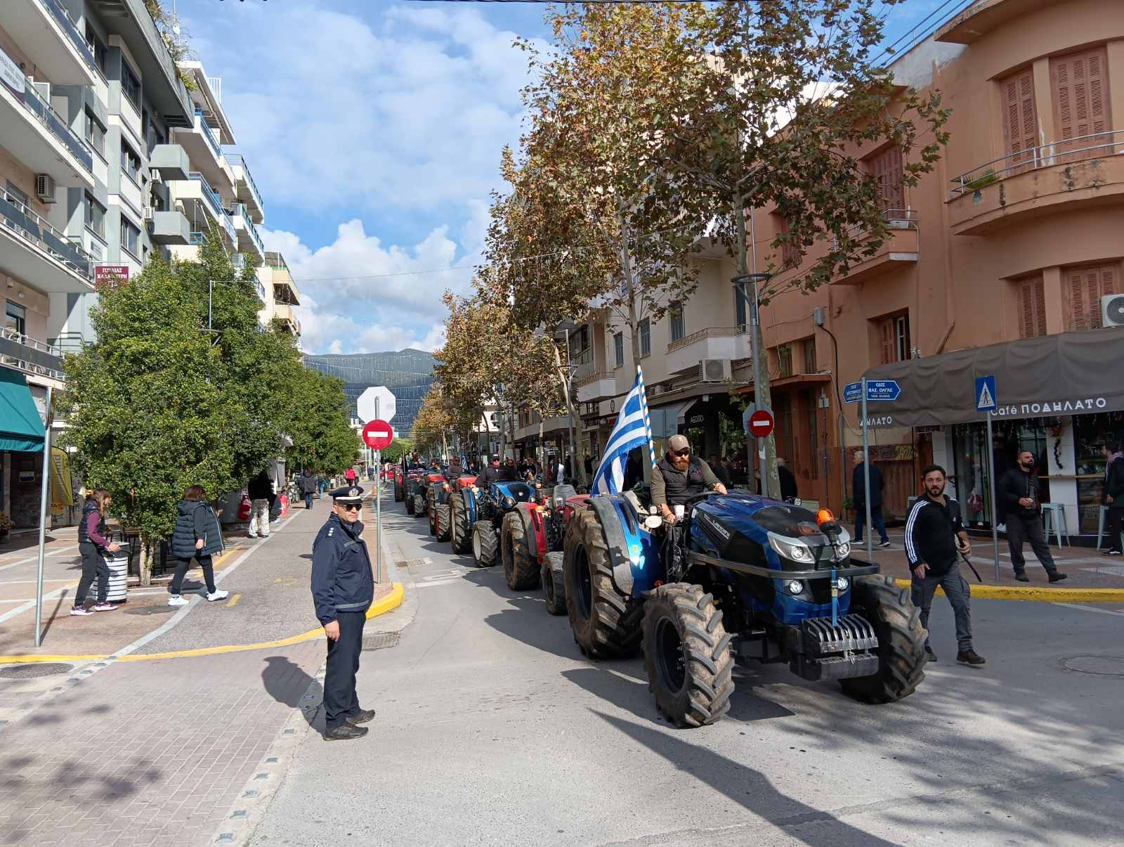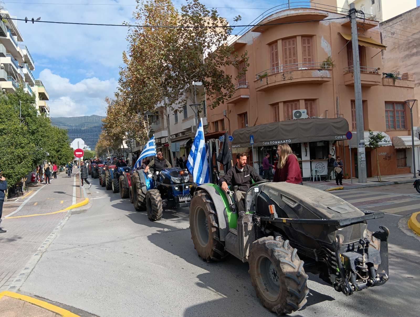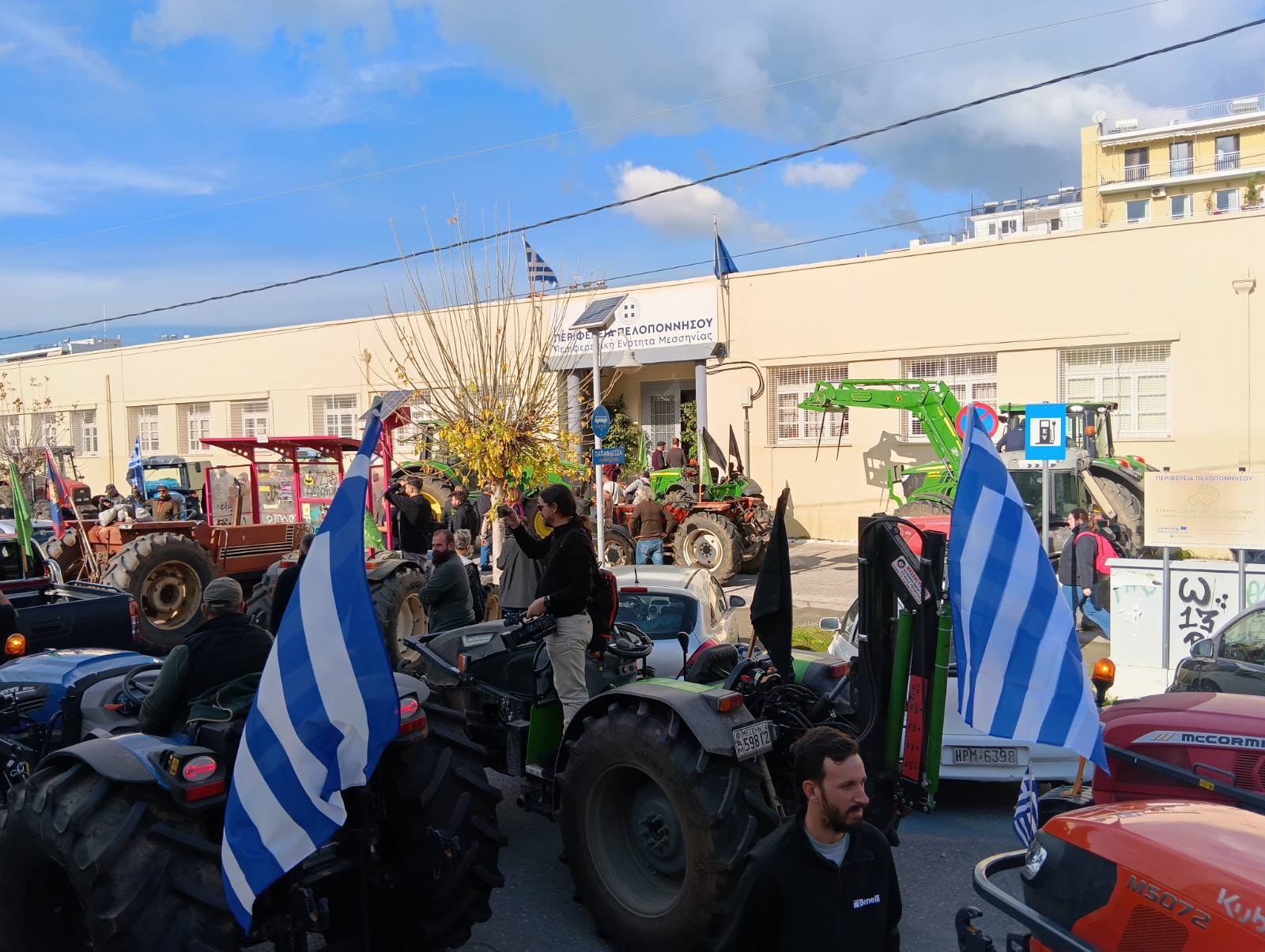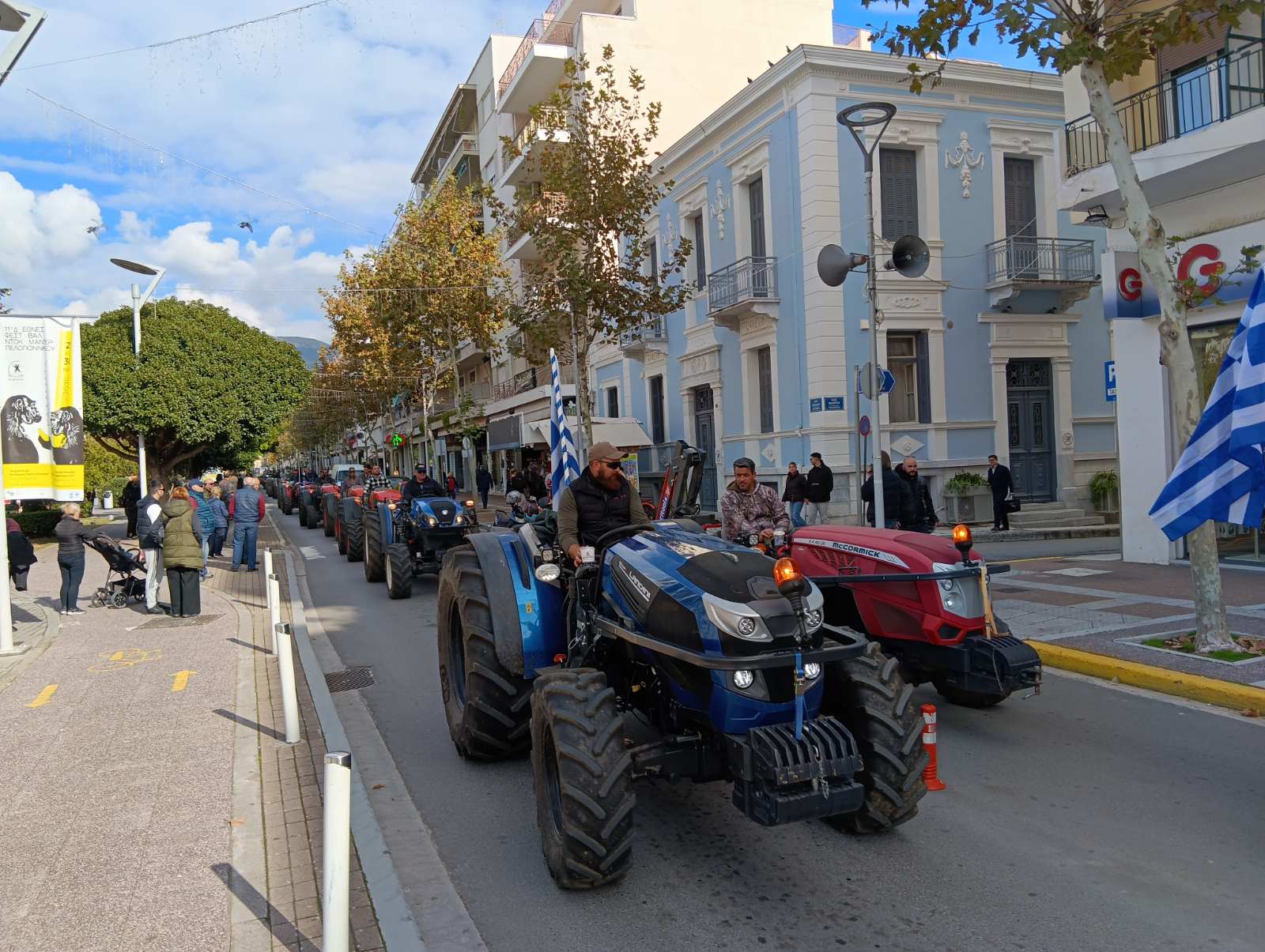 Δεκάδες τρακτέρ παρατάχθηκαν στην οδό Αριστομένους στην κεντρική πλατεία και στη συνέχεια συνέχισαν την πορεία τους προς το Διοικητήριο της Περιφερειακής Ενότητας Μεσσηνίας στην οδό Κρήτης.