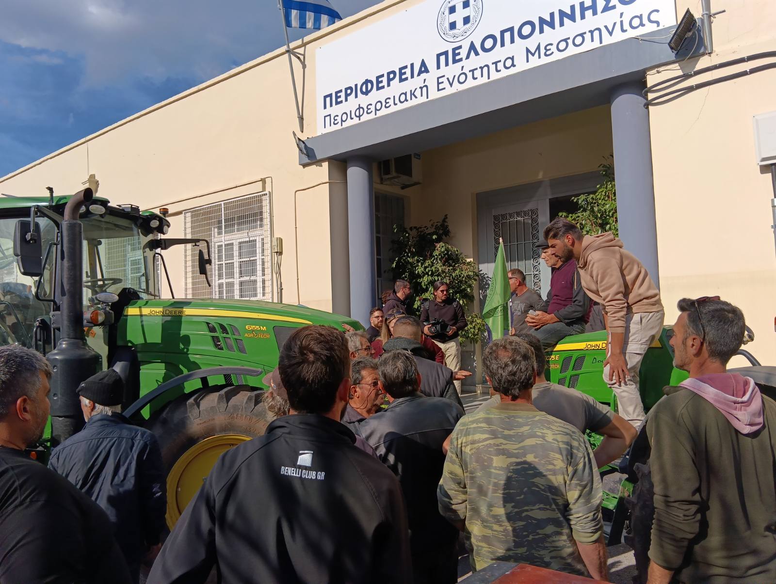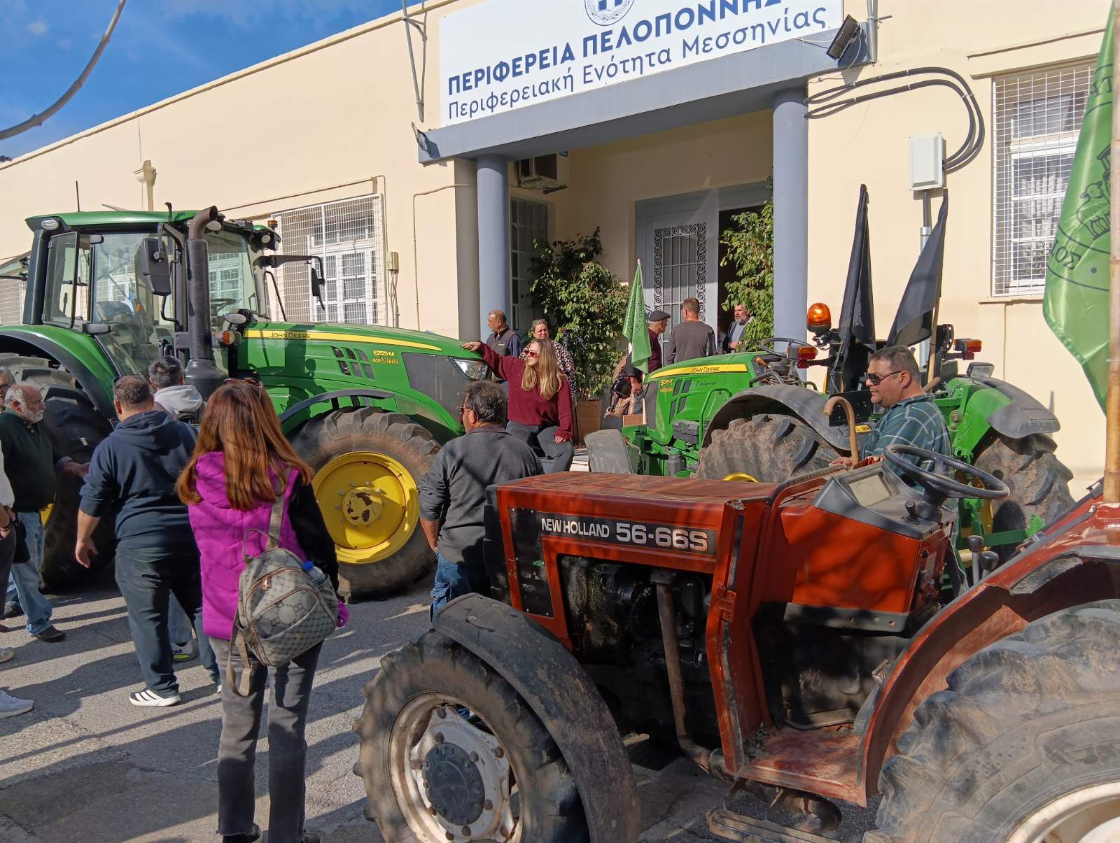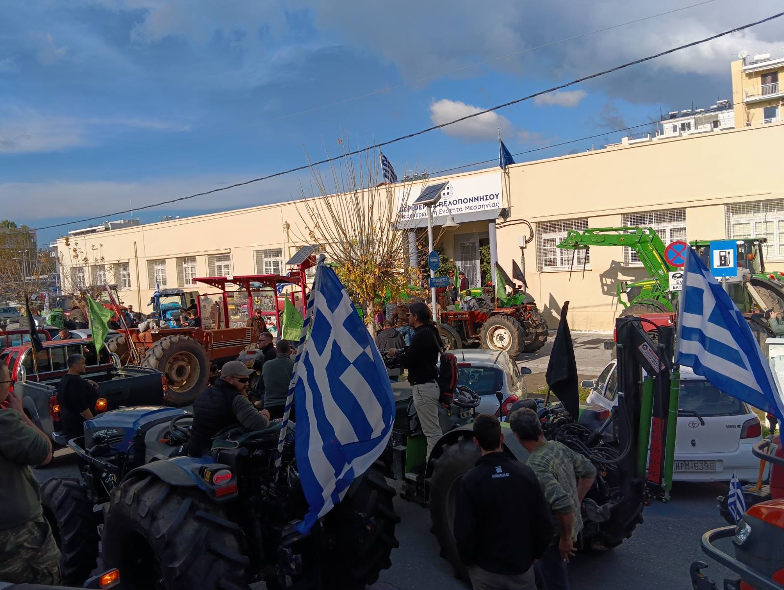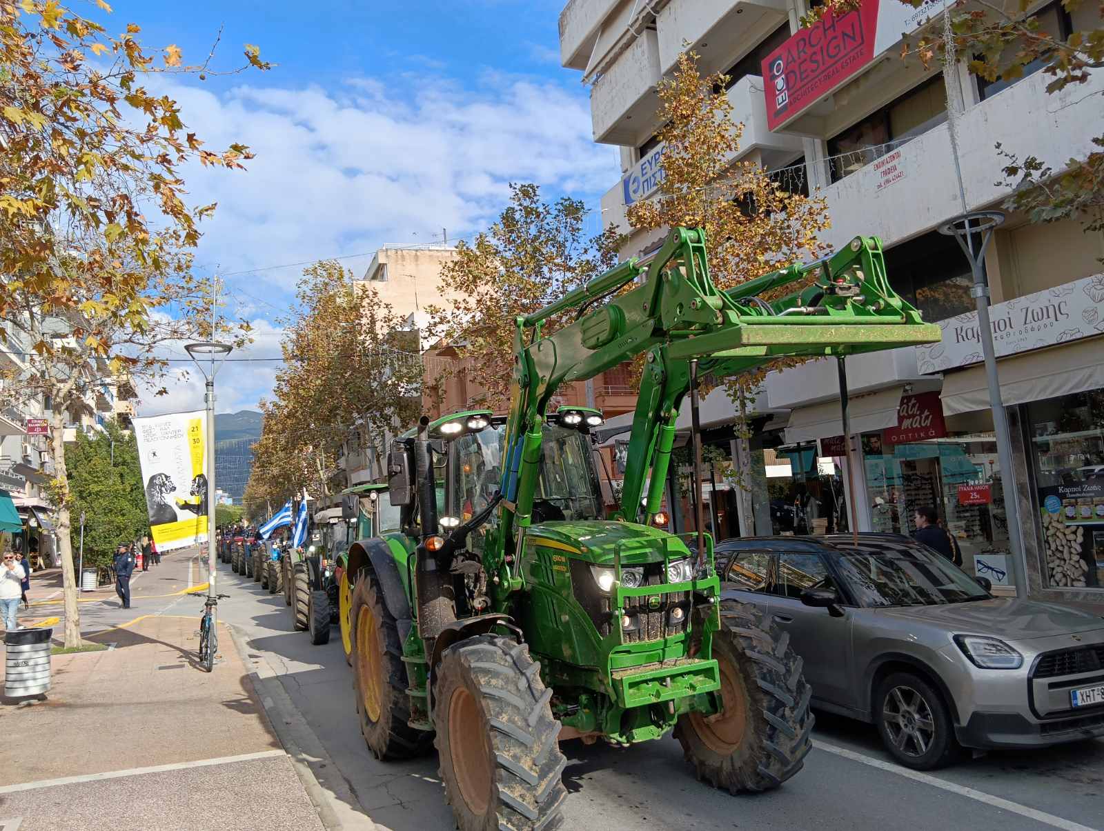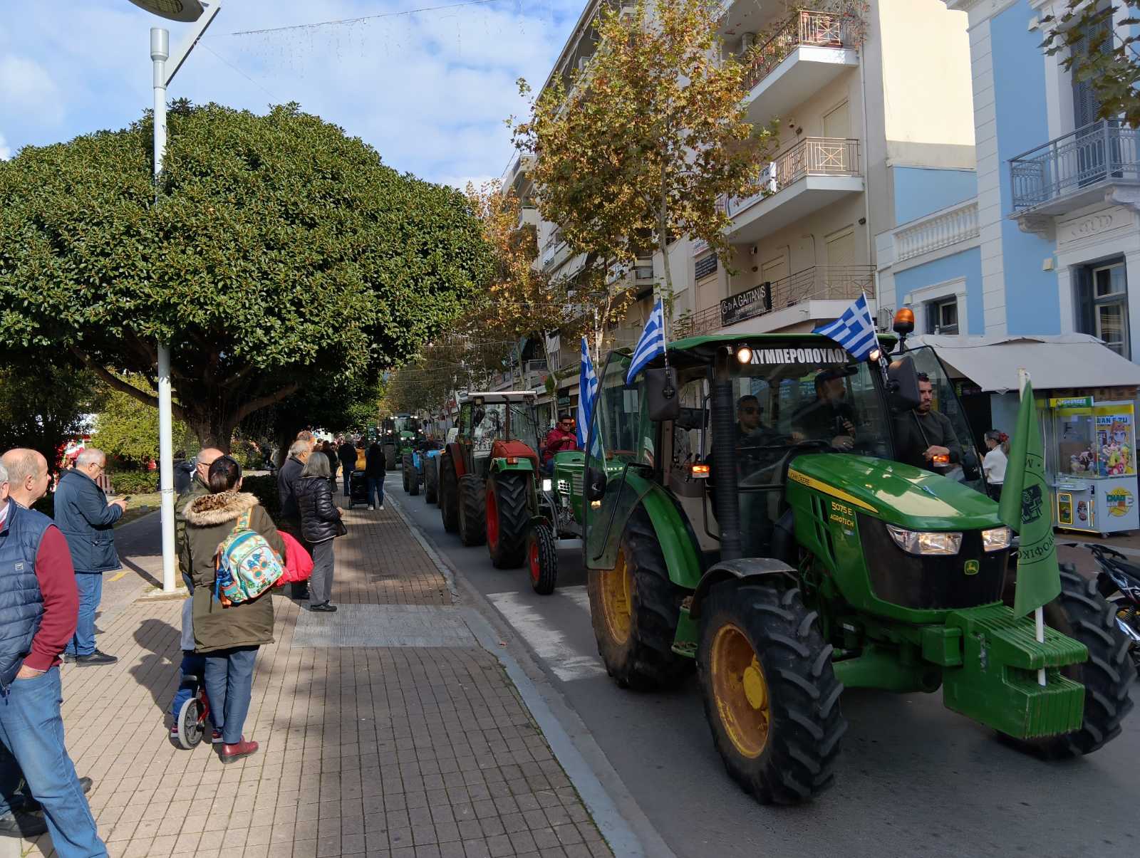 Δεκάδες τρακτέρ παρατάχθηκαν στην οδό Αριστομένους στην κεντρική πλατεία και στη συνέχεια συνέχισαν την πορεία τους προς το Διοικητήριο της Περιφερειακής Ενότητας Μεσσηνίας στην οδό Κρήτης.