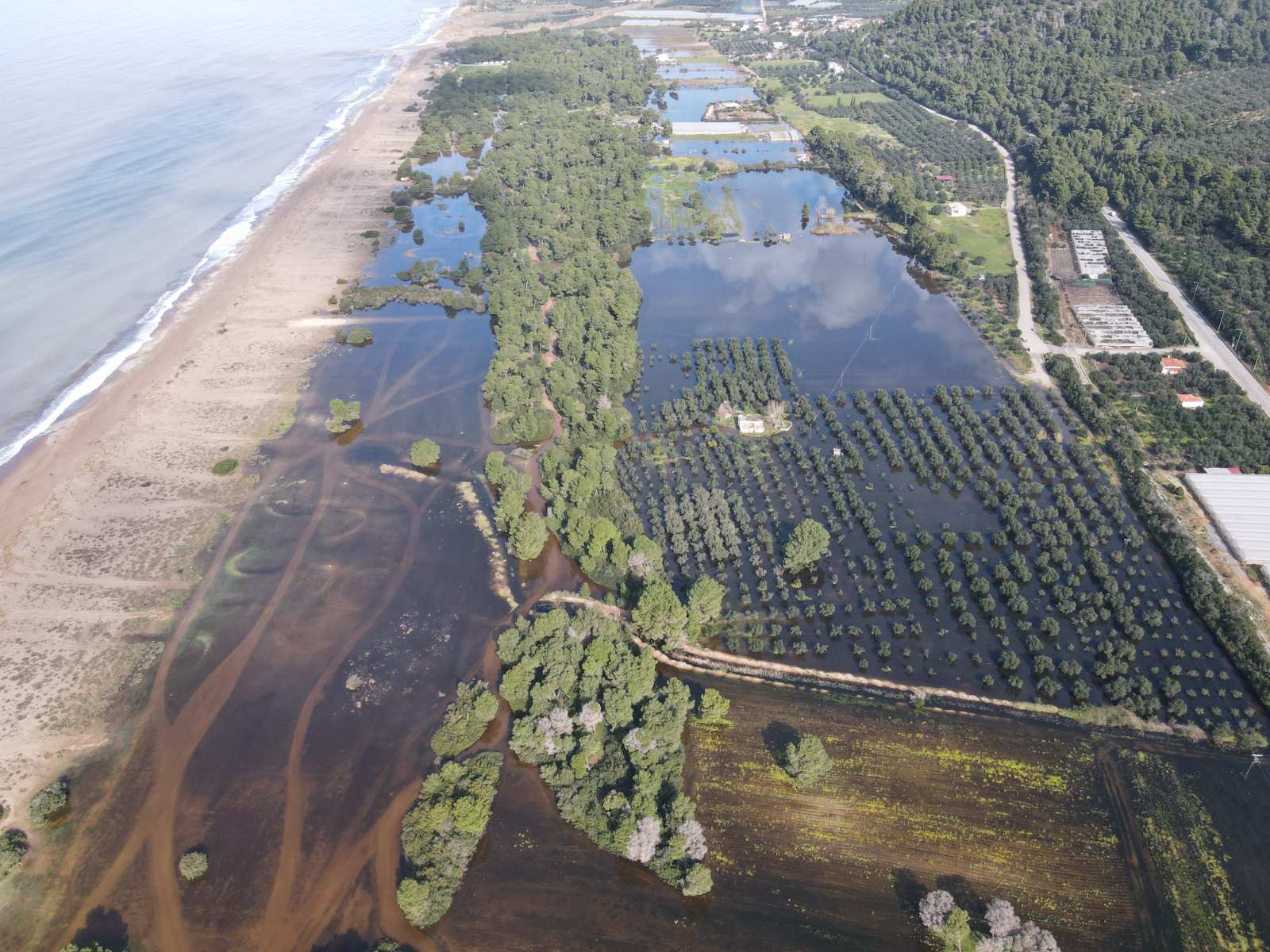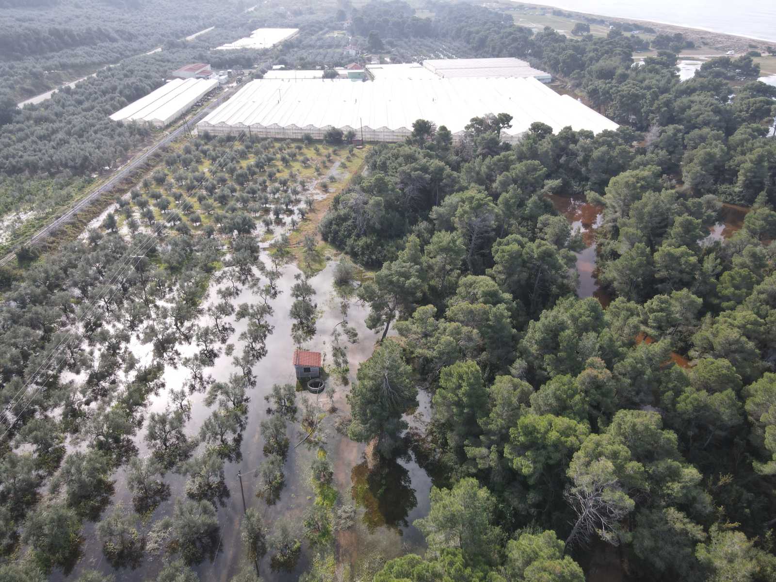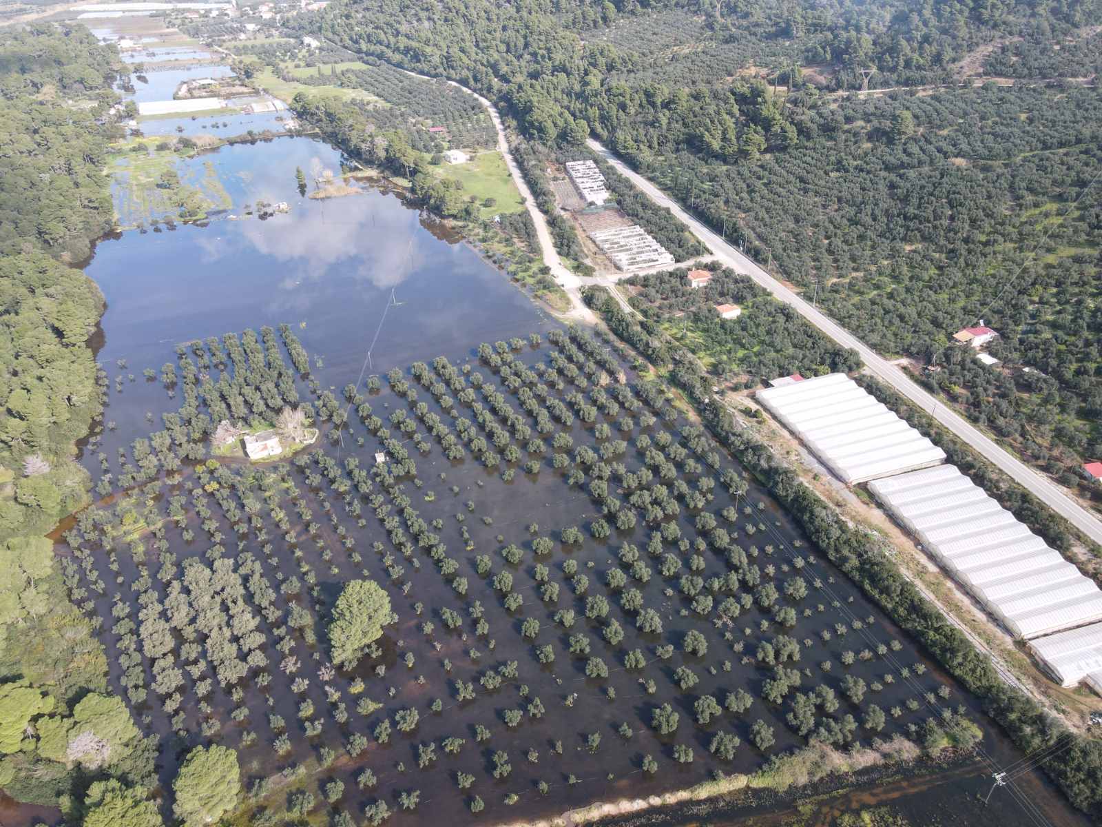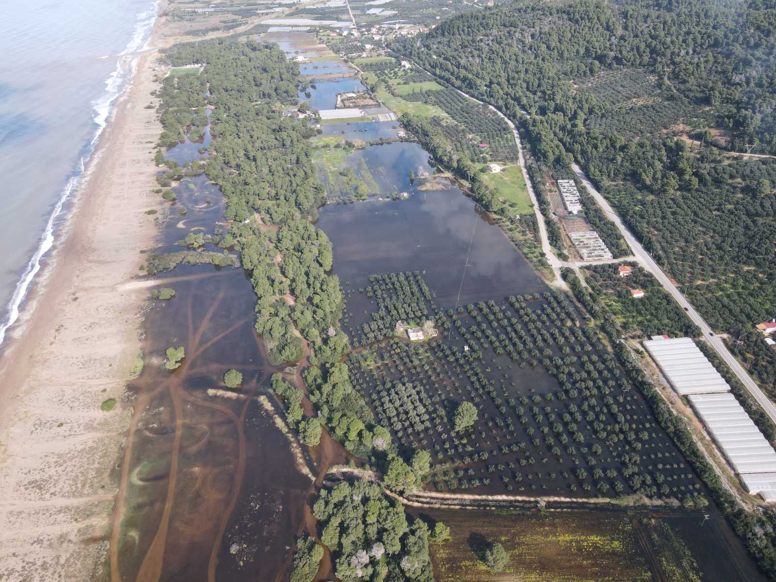 Μια μεγάλη έκταση από την Ελαία μέχρι τον Αϊ Γιαννάκη καλύφθηκς από νερό, σχεδόν όλη η περιοχή από τις σιδηροδρομικές γραμμές και δυτικά. Σκεπάζοντας υπαίθριες καλλιέργειες, ελαιώνες, πλημμυρίζοντας θερμοκήπια, αποθήκες και άλλες εγκαταστάσεις.