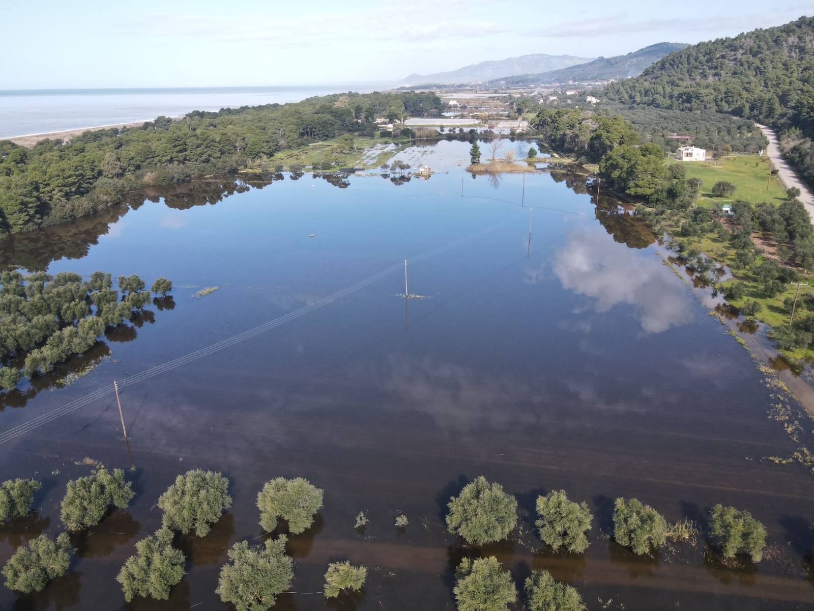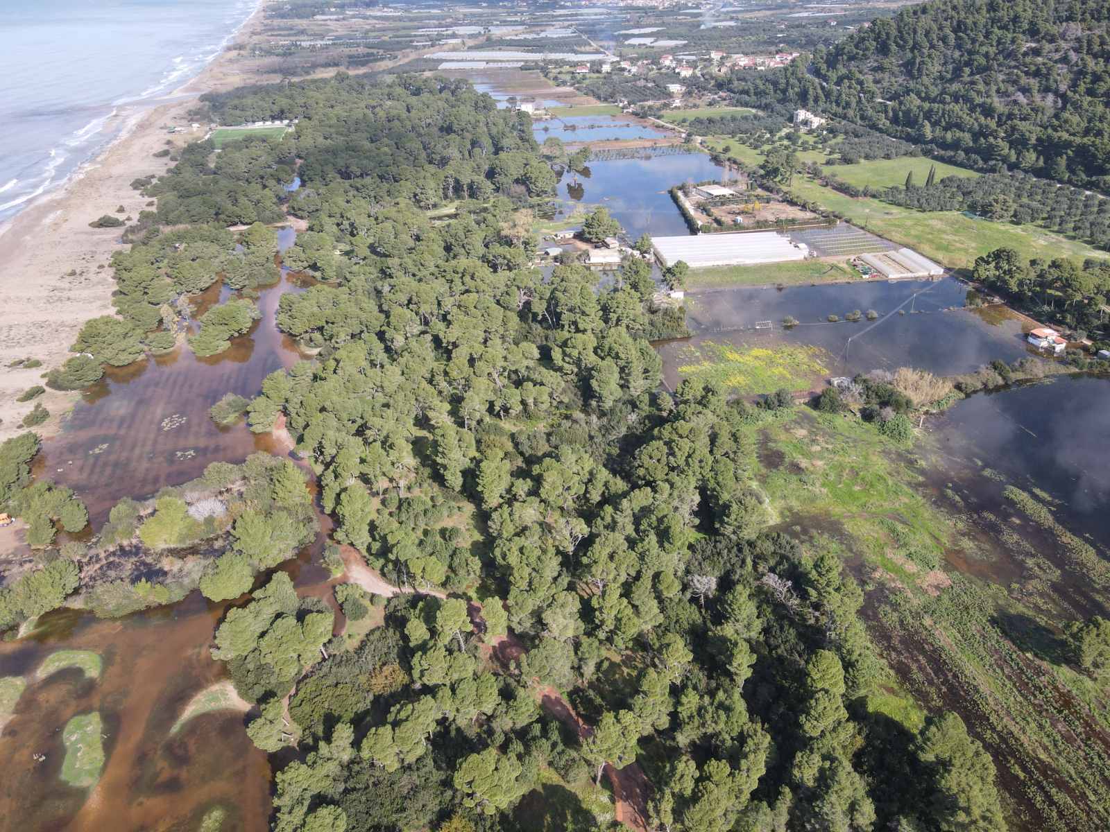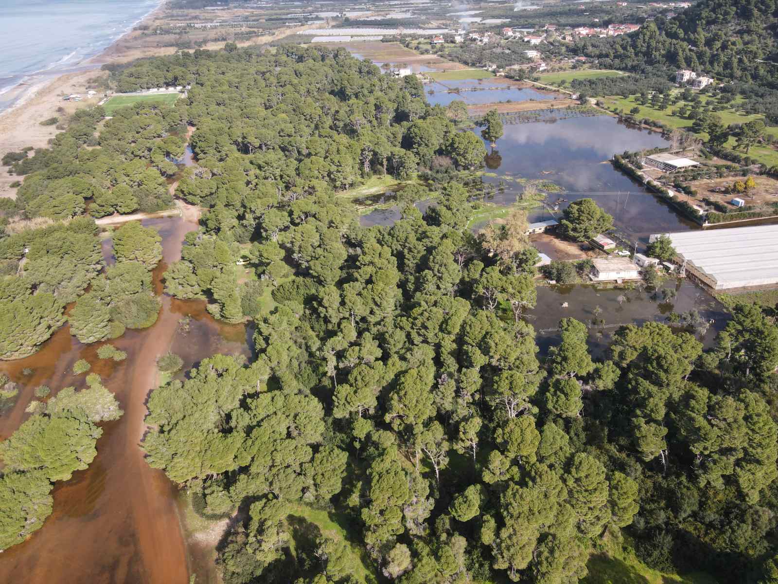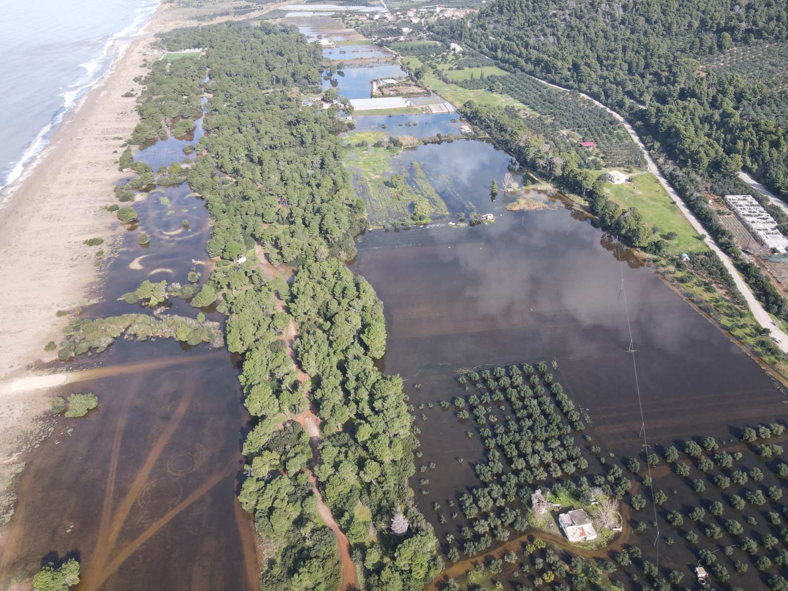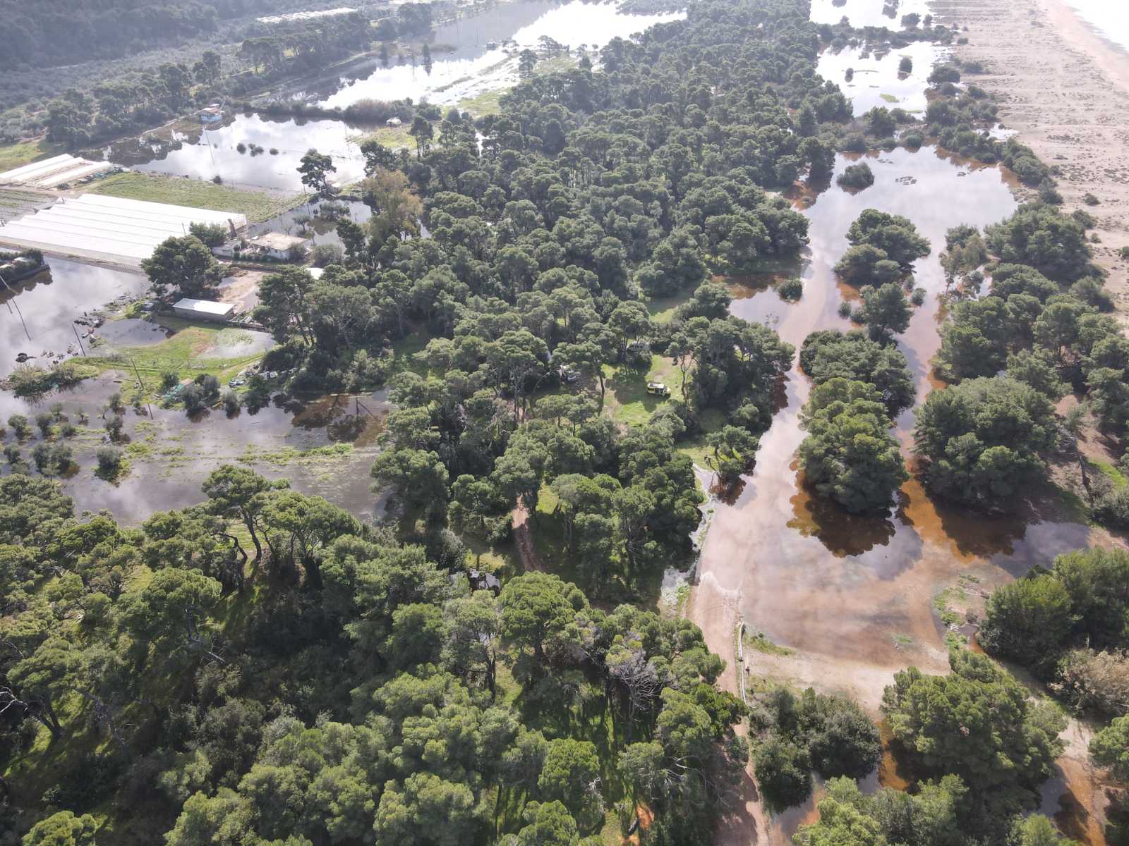 Μια μεγάλη έκταση από την Ελαία μέχρι τον Αϊ Γιαννάκη καλύφθηκς από νερό, σχεδόν όλη η περιοχή από τις σιδηροδρομικές γραμμές και δυτικά. Σκεπάζοντας υπαίθριες καλλιέργειες, ελαιώνες, πλημμυρίζοντας θερμοκήπια, αποθήκες και άλλες εγκαταστάσεις.