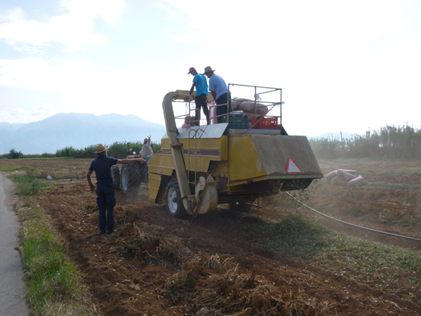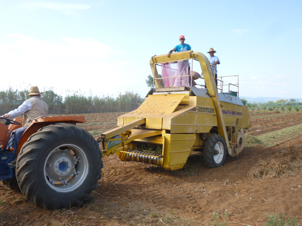 Στα περισσότερα κτήματα τα φιστίκια έχουν βγει και λιάζονται για να ξεραθούν, ενώ μηχανές αλωνίζουν και σακιάζουν το προϊόν.
