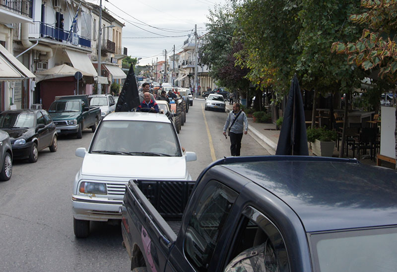 Αντίστοιχα στα Φιλιατρά (κεντρικη φωτο από Filiatra Net) οι αγρότες πέρασαν από κεντρικά σημεία και κατέληξαν στον “Πύργο του Αϊφελ”.