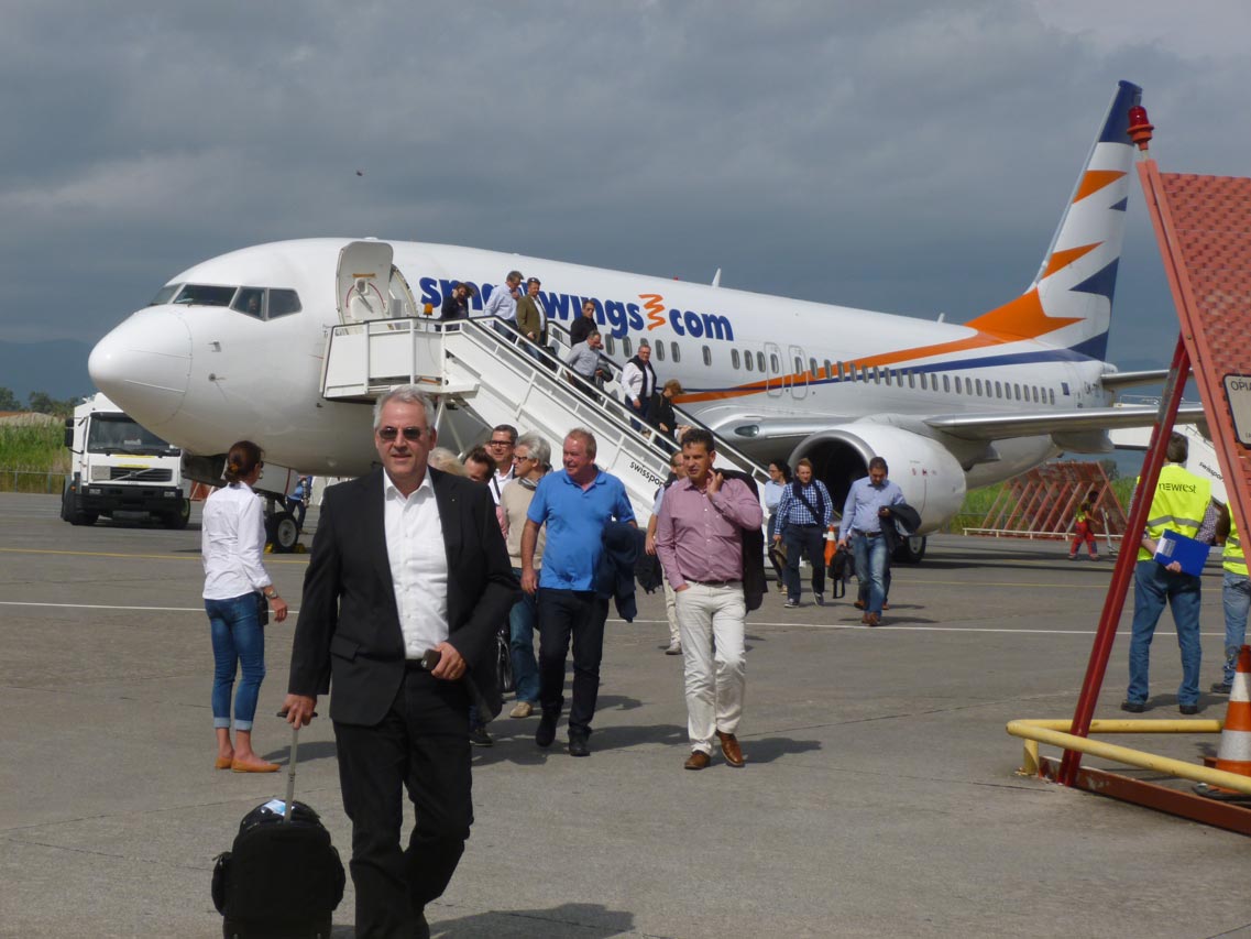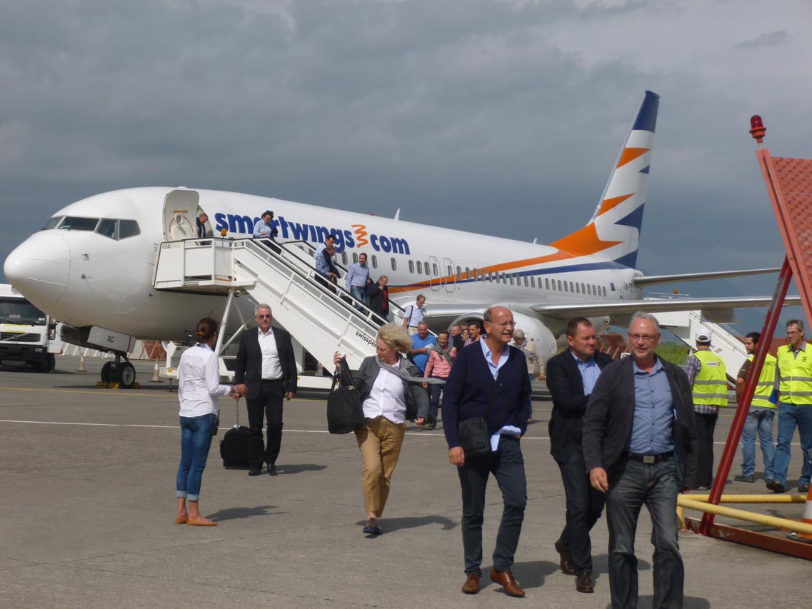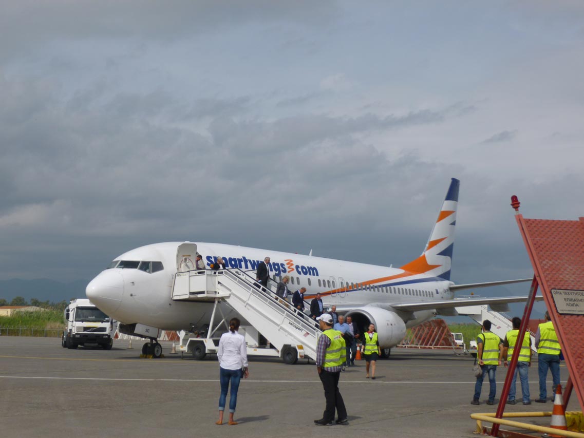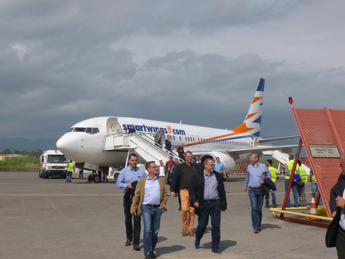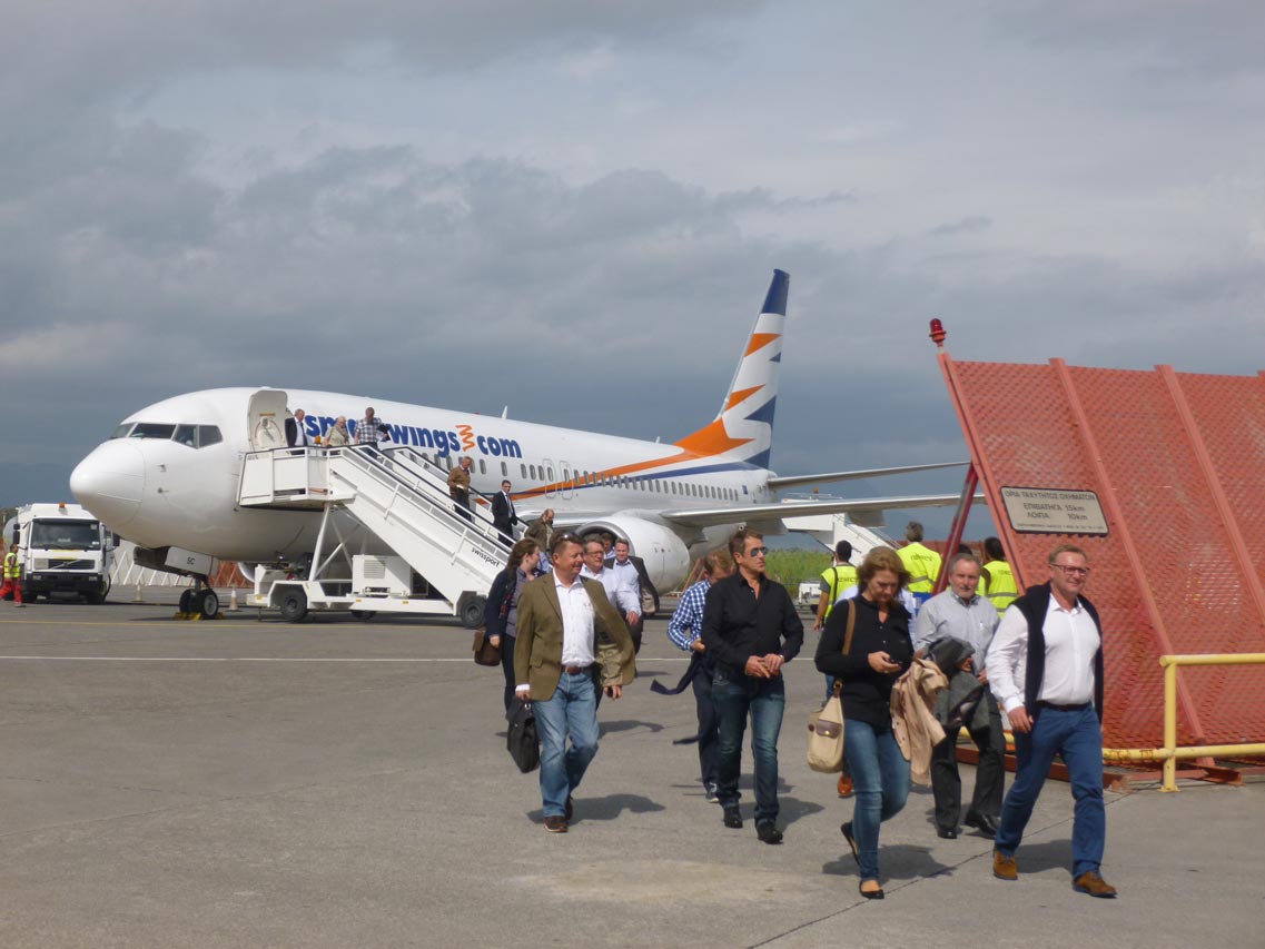 Στο αεροδρόμιο "Καπετάν Βασίλης Κωνσταντακόπουλος" έφθασαν νωρίτερα τα πρώτα αεροπλάνα προερχόμενα από Φρανκφούρτη και Κολωνία της Γερμανίας. Σύμφωνα με τη διοίκηση του αεροδρόμίου από σήμερα και μέχρι τις 5 Δεκεμβρίου θα φθάνουν στην Καλαμάτα 4 αεροπλάνα με 150 - 180 επιβάτες το καθένα από διάφορες ευρωπαϊκές χώρες. Από εκεί με πούλμαν θα μεταφέρονται στην Cοsta Navarino, όπου θα λαμβάνουν μέρος στην παρουσίαση και στα δοκιμαστικά των νέων μοντέλων και την επόμενη ημέρα θα αναχωρούν, δίνοντας τη θέση τους στους επόμενους επισκέπτες.