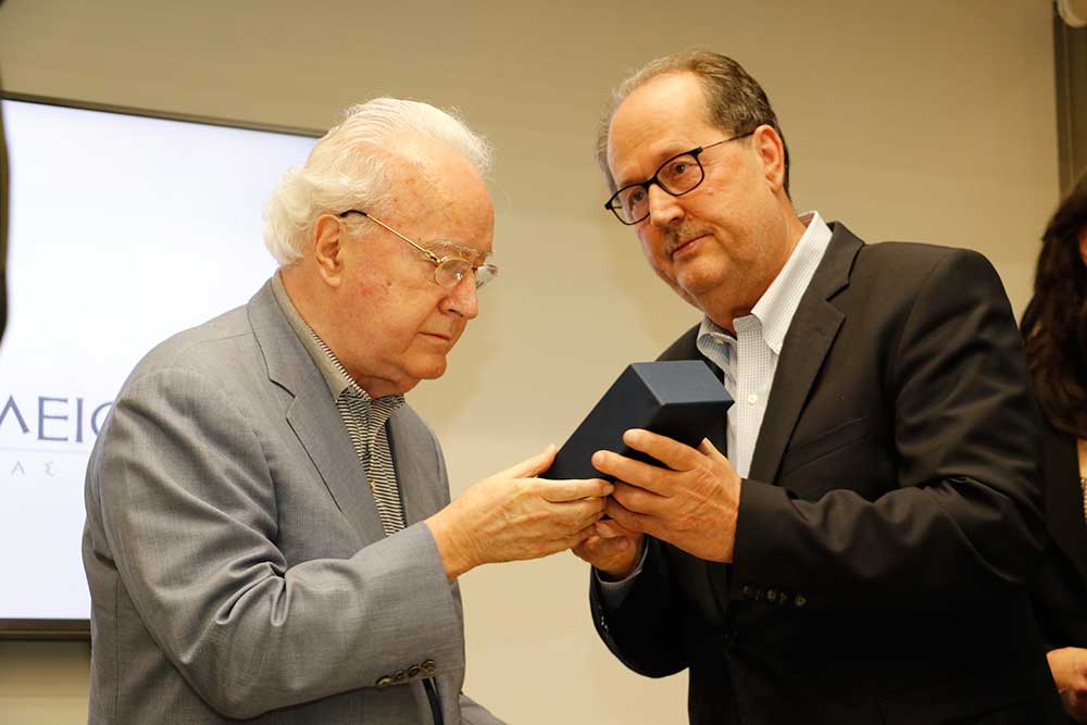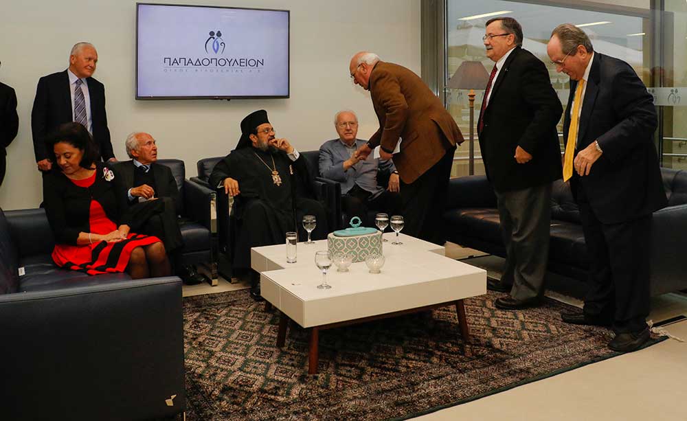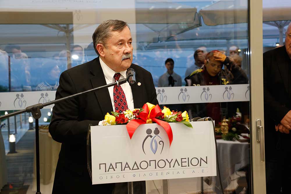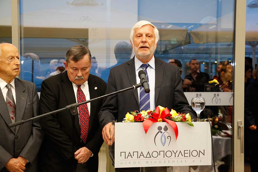 Ο περιφερειάρχης Πέτρος Τατούλης δώρισε ένα λεύκωμα της Μεσσηνίας στον κ. Παπαδόπουλο, ώστε οι εικόνες του να τον συντροφεύουν σε όποιο μέρος της γης και αν βρίσκεται. Εκ μέρους του προσωπικού, ευχαριστίες απηύθυνε η Αννα Καλογεροπούλου και στη συνέχεια το λόγο πήρε ο γενικός διευθυντής Νίκος Παπαδόπουλος. "Είμαι πολύ χαρούμενος για τα όσα ειπώθηκαν σήμερα για τον εξάδελφό μου. Το "Papadopoulion House" αυτή τη στιγμή δίνει δουλειά σε 35 άτομα και υπάρχουν και πολλά σχέδια για το μέλλον" είπε ο κ. Παπαδόπουλος.