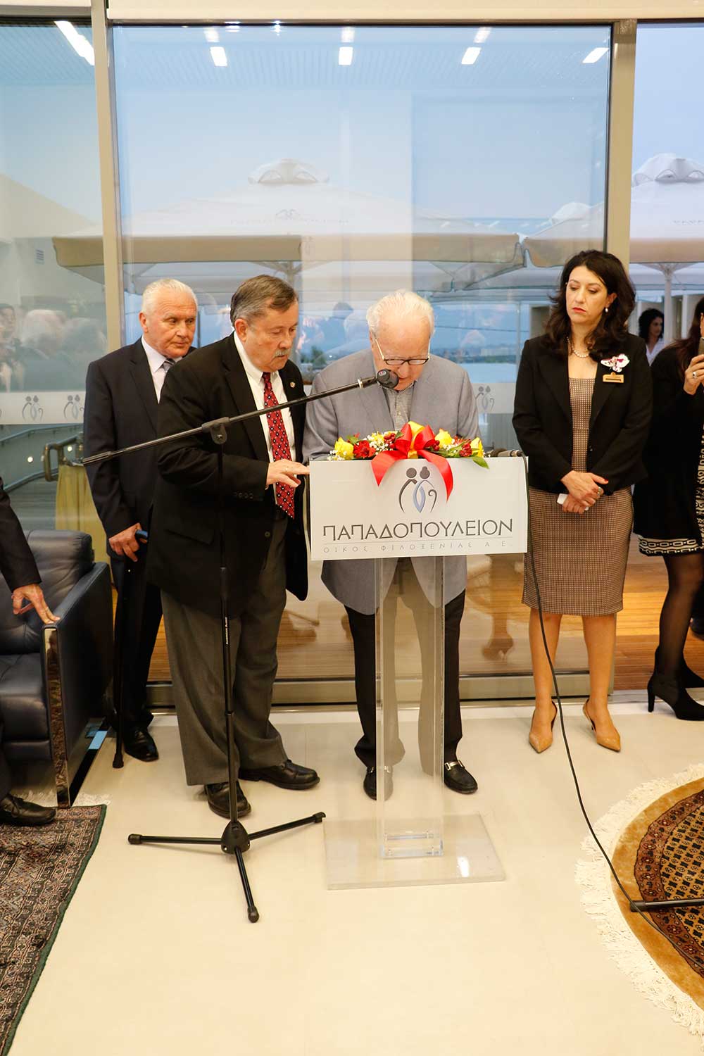 Ο ίδιος ο Σταύρος Παπαδόπουλος μίλησε με δυσκολία, αφού του ήταν σχεδόν αδύνατο να συγκρατήσει τα δάκρυά του. "Εφυγα πολύ νέος. Οπου και να ταξίδεψα, η σκέψη και η καρδιά μου ήταν εδώ. Η χαρά και η συγκίνησή μου είναι τόση, γιατί το έργο αυτό αφορά τους ανθρώπους της τρίτης ηλικίας. Αυτούς που έχουν μοχθήσει μια ολόκληρη ζωή. Δικαιούνται να έχουν φροντίδα, περίθαλψη και πάνω από όλα ένα οικογενειακό περιβάλλον. Αυτό είναι το κύριο μέλημά μου. Είμαστε δίπλα τους για να τους κρατάμε ενεργούς" τόνισε ο ιδρυτής του "Papadopoulion House" και ευχαρίστησε τους συνεργάτες, τους προμηθευτές και ειδικά την εταιρεία "People" του Ευάγγελου Πτωχού.