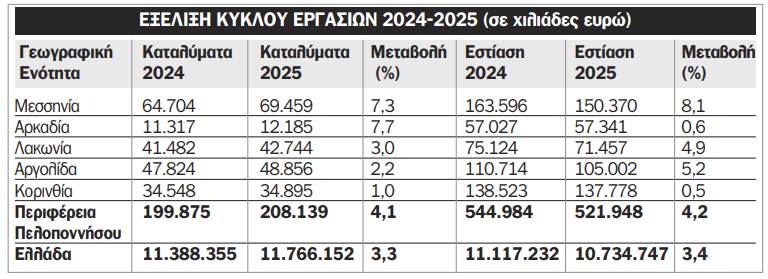 Η εστίαση στη Μεσσηνία δέχτηκε ισχυρό πλήγμα κατά το 2025, καθώς ο κύκλος εργασιών στον κλάδο σημείωσε τη μεγαλύτερη ποσοστιαία μείωση σε ολόκληρη την Περιφέρεια Πελοποννήσου.