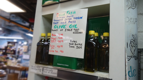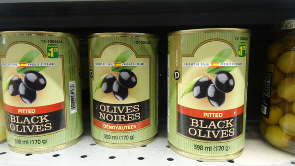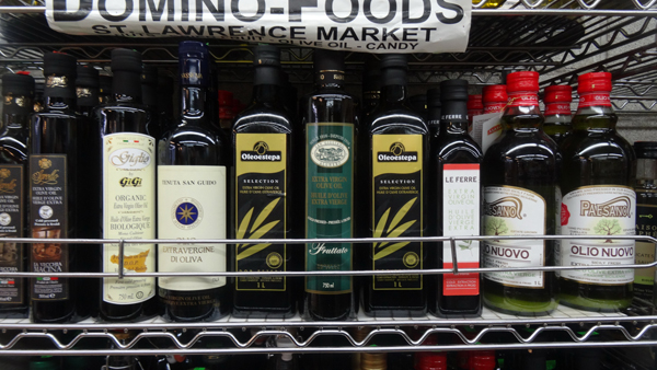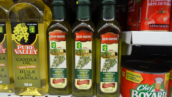 Αξίζει, τέλος, να αναφερθεί, ότι στην αλυσίδα των καταστημάτων Dollarama -όπου οι τιμές φθάνουν μέχρι τα 3 δολάρια ανά προϊόν- βρήκα τυποποιημένες ελιές Ισπανίας, καθώς και άγνωστης προέλευσης τυποποιημένο έξτρα παρθένο ελαιόλαδο, όπως αναφερόταν, με ετικέτα Olio Gusto, με τιμή 2 δολάρια (1,36 ευρώ) η φιάλη των 250 ml.