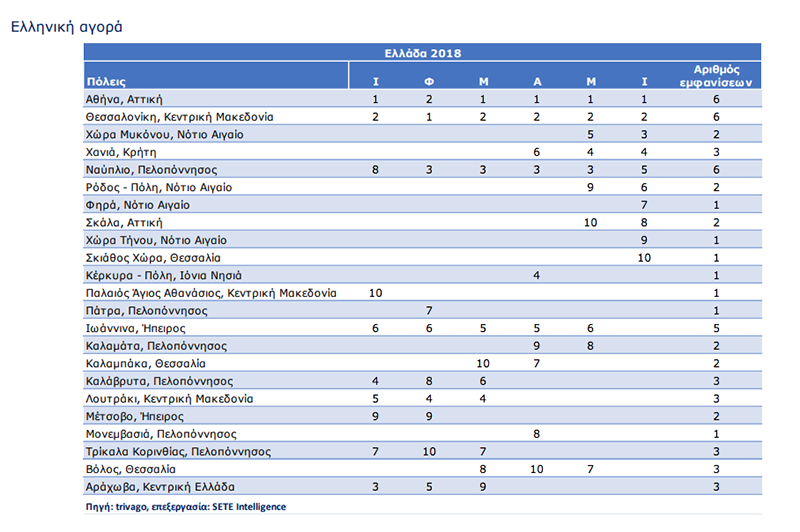 "Τον Ιούνιο του 2018, στις κατηγορίες 1-2 αστέρων οι ελληνικοί προορισμοί παρουσίασαν αύξηση με εξαίρεση την Ηπειρο. Στην κατηγορία των 3 αστέρων η πλειοψηφία των προορισμών παρουσίασε αύξηση πλην της Αν. Μακεδονίας και Θράκης και των Σποράδων. Στην κατηγορία των 4 αστέρων μείωση παρουσίασε μόνο η Αν. Μακεδονία και Θράκη, ενώ μεικτή ήταν η εικόνα στην κατηγορία 5 αστέρων.