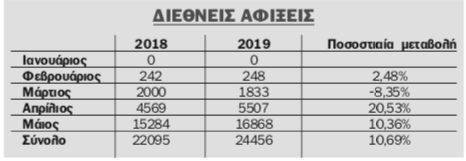 Τον Μάιο του 2019, πτωτικά κινήθηκαν οι περισσότερες τιμές των περιφερειακών ξενοδοχείων.