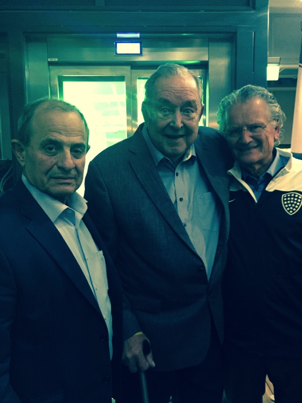 Με τον αείμνηστο πρόεδρο της UEFA Λέναρτ Γιόχανσον (στη μέση) και τον φίλο του Θανάση Ψαρούλη (αριστερά)