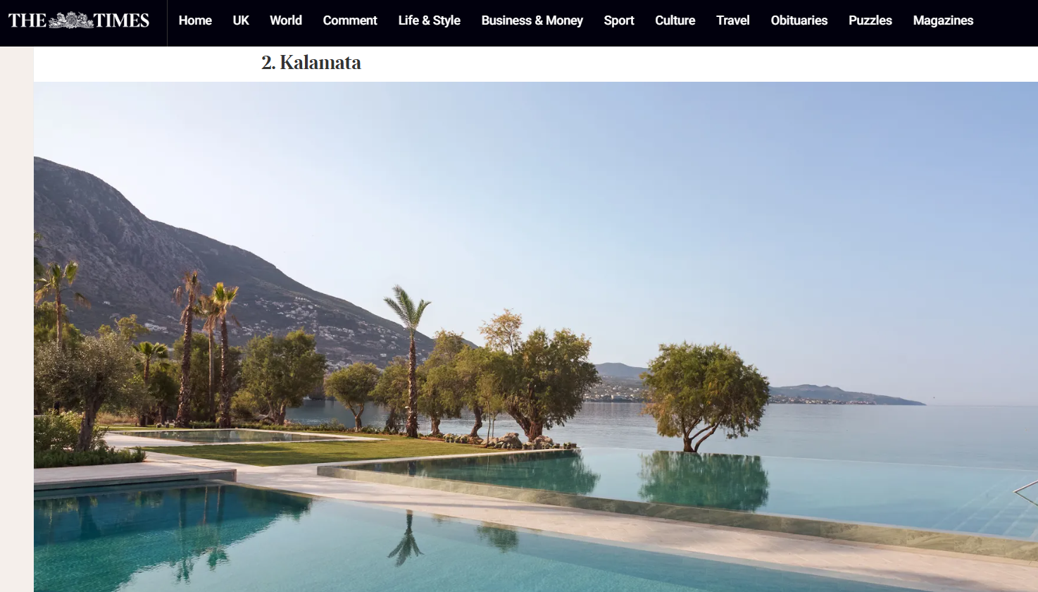 «Αποφύγετε την πολυσύχναστη Αθήνα και προτιμήστε αυτή την γοητευτική πόλη της Πελοποννήσου, στη νότια ακτή της ηπειρωτικής Ελλάδας. Γνωστή για το ελαιόλαδό της, η Καλαμάτα διαθέτει παραλίες με γαλάζια σημαία, έναν ζωντανό παραλιακό δρόμο και μια γοητευτική παλιά πόλη με κεραμοσκεπές κάτω από ένα μεσαιωνικό κάστρο. Ακόμα, μπορείτε να προγραμματίσετε εύκολες ημερήσιες εκδρομές στην Αρχαία Μεσσήνη καθώς και στη Σπάρτη. Η Καλαμάτα διαθέτει ταβέρνες, λιθόστρωτους δρόμους γεμάτους καφέ, λαϊκή αγορά που λειτουργεί δύο φορές την εβδομάδα και την ιστορική πλατεία 23ης Μαρτίου η οποία συνδέεται άρρηκτα με την απελευθέρωση από τον Οθωμανικό ζυγό και το ξεκίνημα της Ελληνικής Επανάστασης» αναφέρει η συντάκτρια του άρθρου Fiona Sims.