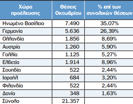 Στις μεγάλες γεωγραφικές ενότητες, η εικόνα διαμορφώνεται ως εξής (βάσει αφίξεων οκταμήνου):