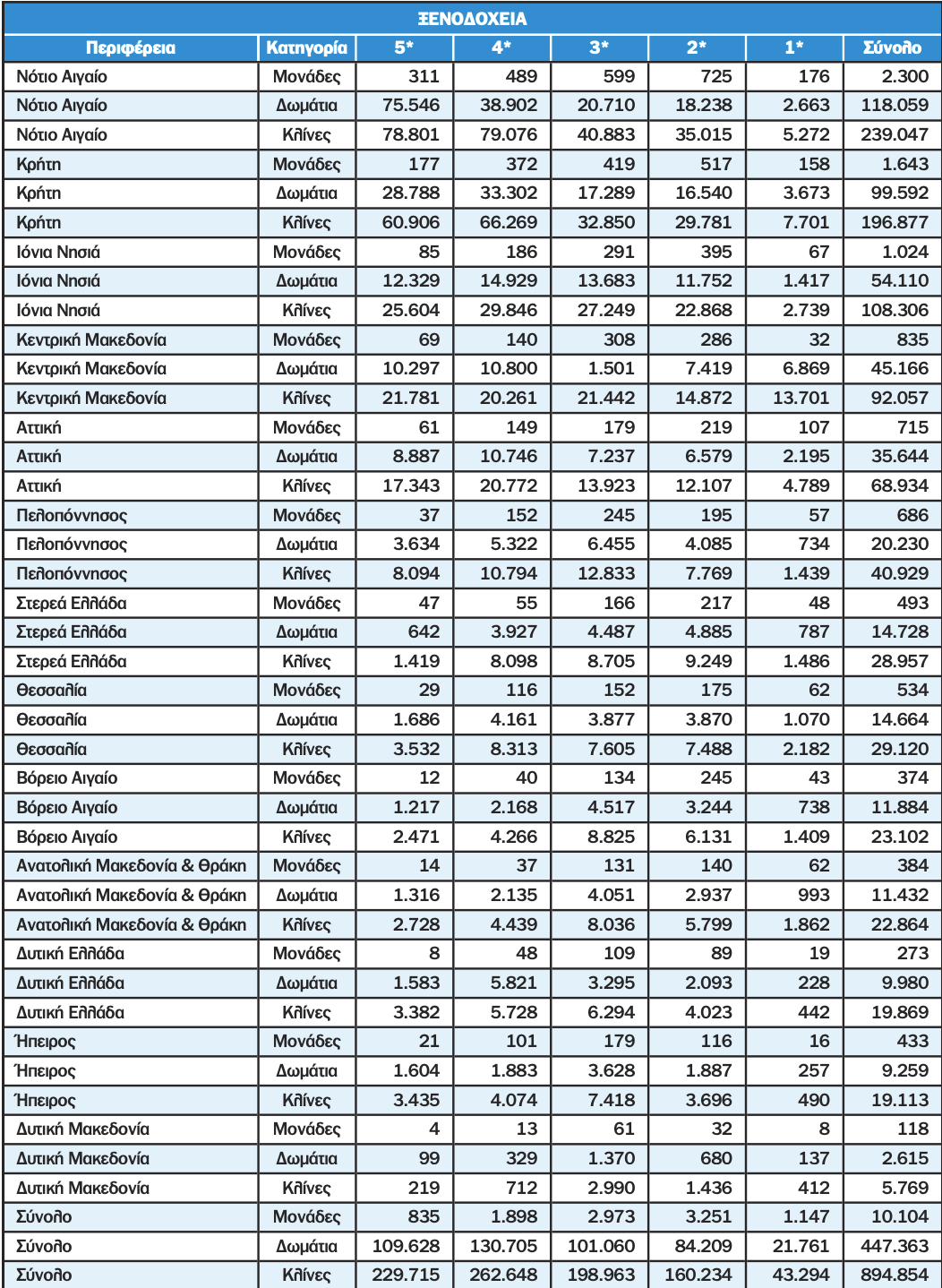 - και η Αρκαδία με 6.736 κλίνες (10%).