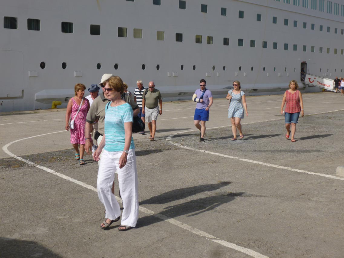 Οι πιο πολλοί τουρίστες επισκέπτονται το εμπορικό και ιστορικό κέντρο της Καλαμάτας. Το κρουαζιερόπλοιο που έχει Ελληνα καπετάνιο και άλλους 20 Ελληνες μέλη του πληρώματος, προέρχεται από τα Χανιά και θα αναχωρήσει στις 3 το μεσημέρι με προορισμό την Κέρκυρα.