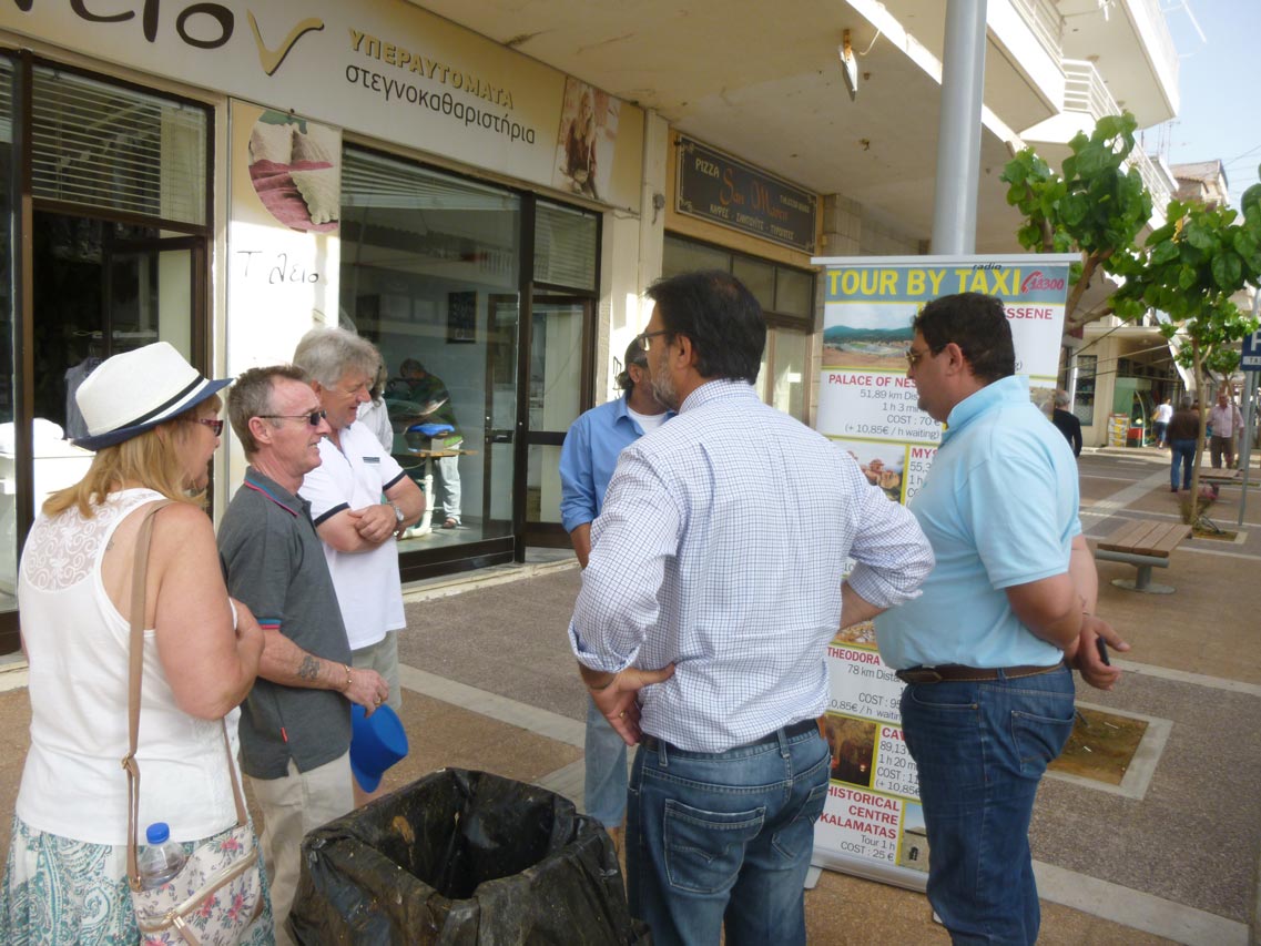 Τους επισκέπτες υποδέχθηκε αντιπροσωπεία του Δήμου Καλαμάτας και της Εφορείας Αρχαιοτήτων Μεσσηνίας που μοίραζε χάρτες, κάρτες και ένα φυλλάδιο με τα μνημεία στο ιστορικό κέντρο της πόλης, ενώ ενημέρωνε για τα αξιοθέατα της περιοχής.