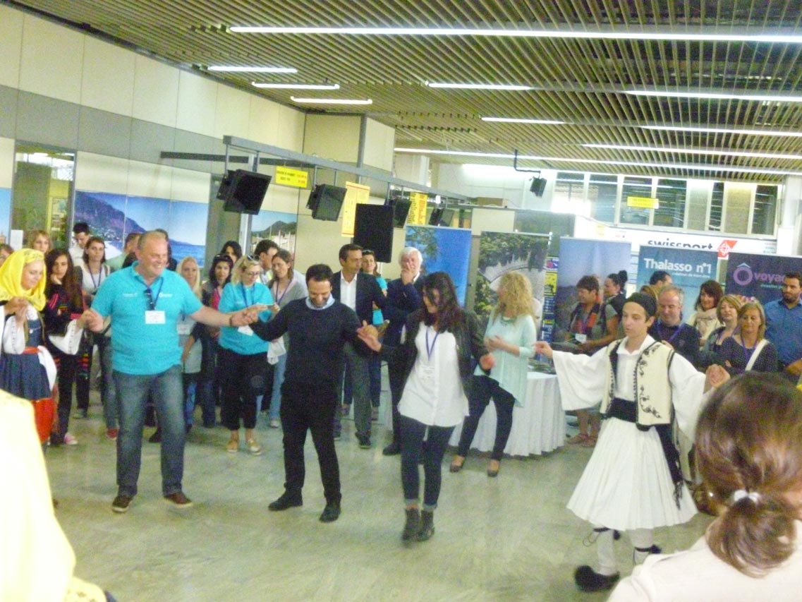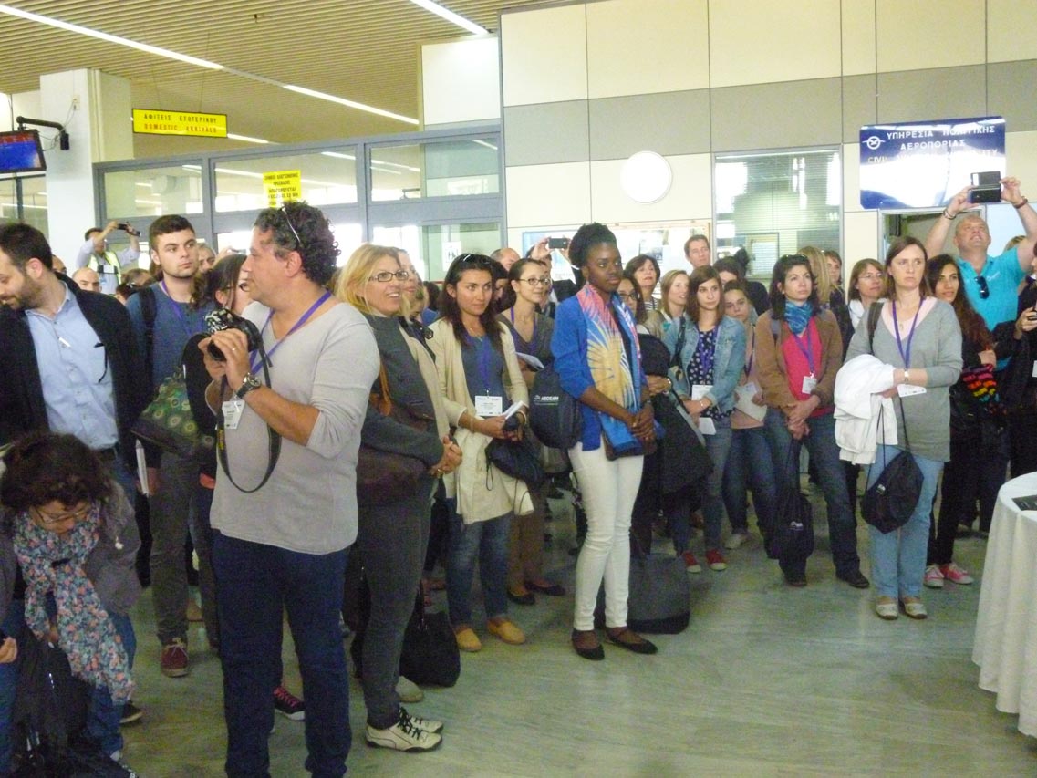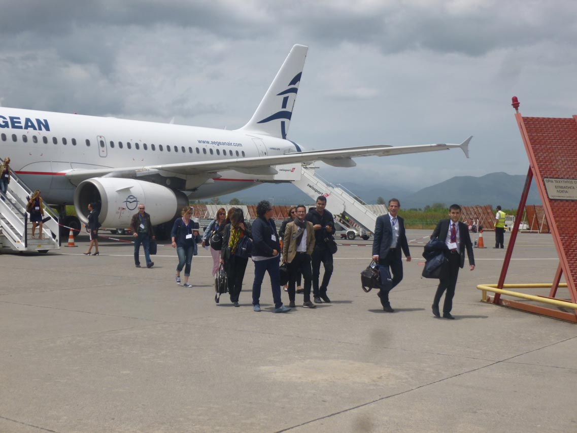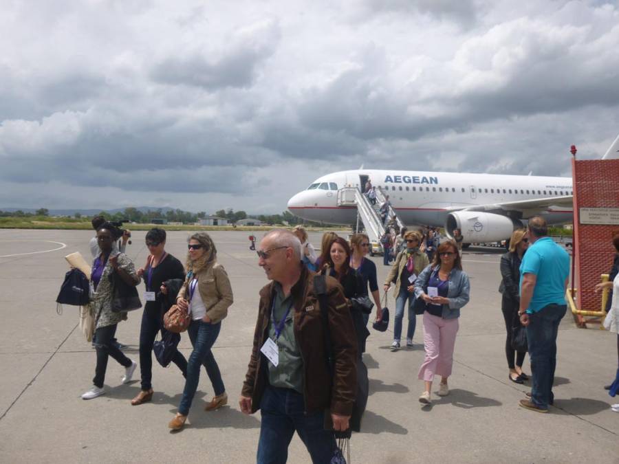 Ηρθαν στο αεροδρόμιο της Καλαμάτας με απευθείας πτήση της Aegean από το Παρίσι. Τους υποδέχθηκαν ο περιφερειάρχης Πέτρος Τατούλης, οι αντιπεριφερειάρχες Ντίνα Νικολάκου και Περικλής Μαντάς και αντιπροσωπεία του Δήμου Καλαμάτας με επικεφαλής την πρόεδρο της Επιτροπής Τουρισμού Παναγιώτα Ντίντα και τον αντιδήμαρχο Δημήτρη Βεργόπουλο.