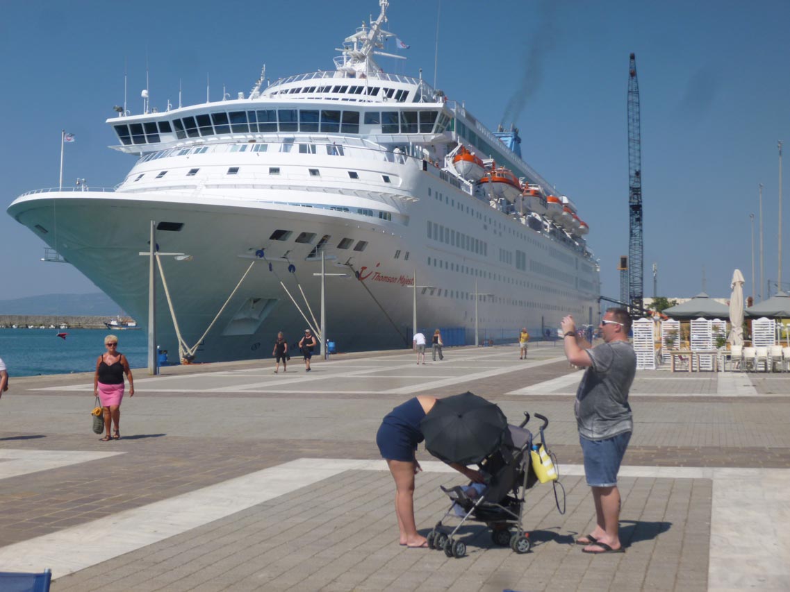 Δύο πούλμαν με τουρίστες επισκέπτονται την Αρχαία Μεσσήνη και άλλα δύο τα κάστρα της Πύλου και της Μεθώνης. Το κρουαζιερόπλοιο προέρχεται από τα Χανιά και θα αναχωρήσει το μεσημέρι με προορισμό την Κέρκυρα.