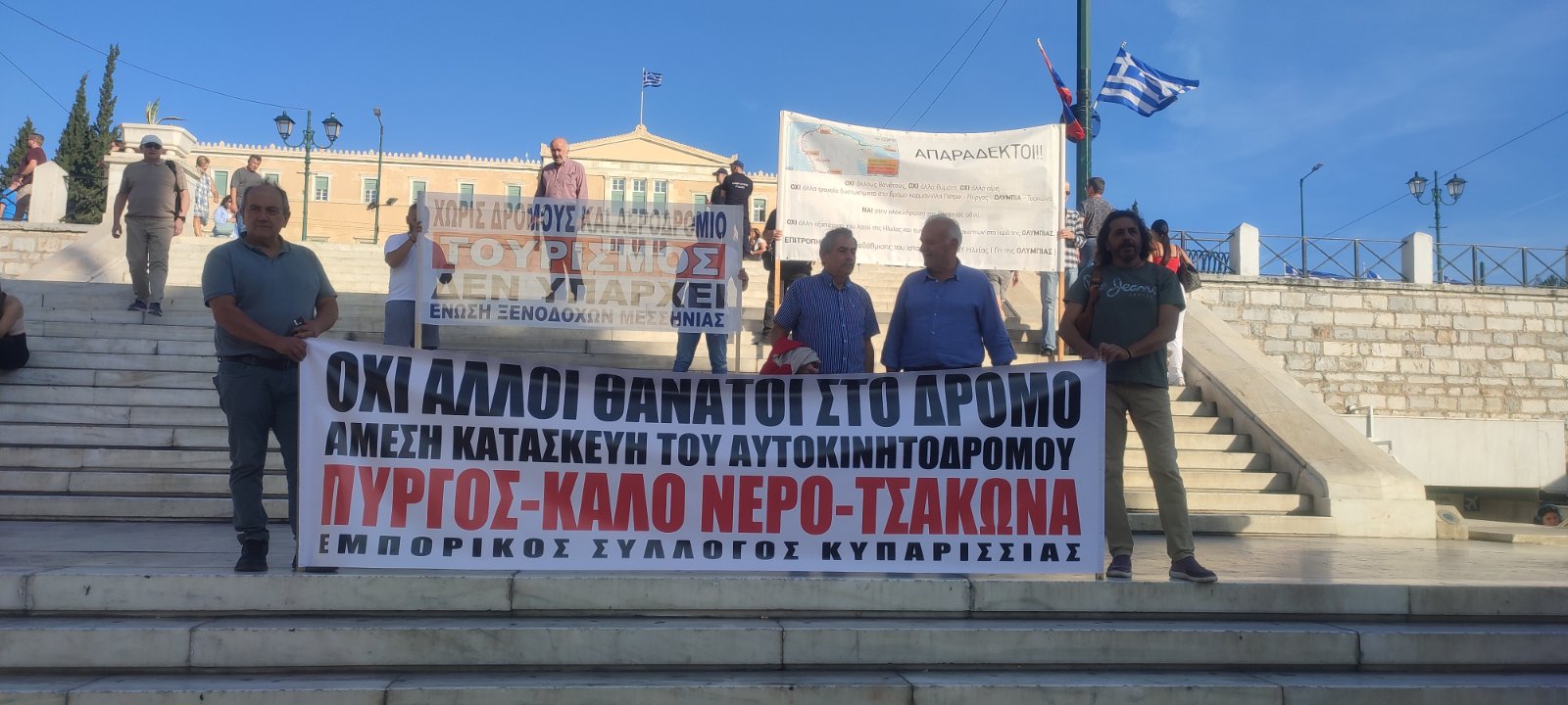 Από την πλευρά του ο πρόεδρος του Εμπορικού Συλλόγου Κυπαρισσίας Δημήτρης Τερζής τόνισε: «Εκφράζουμε την ικανοποίησή μας για τη συμμετοχή του κόσμου στη συγκέντρωση διαμαρτυρίας που πραγματοποιήθηκε στο Σύνταγμα σχετικά με τον αυτοκινητόδρομο Πύργος - Καλό Νερό - Τσακώνα. Η δυναμική παρουσία των πολιτών απέδειξε ότι η κοινωνία είναι ενωμένη και αποφασισμένη να διεκδικήσει αυτό το κρίσιμο έργο για την περιοχή μας. Αυτή ήταν η πρώτη αντίδραση της κοινωνίας και αναμένουμε ένα σαφές χρονοδιάγραμμα για την υλοποίηση του έργου. Παράλληλα, αναμένουμε και την ενημέρωση από την κυβέρνηση, έπειτα από τη συνάντηση με τον υφυπουργό παρά τω πρωθυπουργώ κ. Θανάση Κοντογιώργη, σχετικά με την επιλογή χάραξης στην περιοχή του Καϊάφα, την ολοκλήρωση των μελετών και ανεύρεσης χρηματοδοτικού εργαλείου. Σε κάθε περίπτωση, ο αγώνας για την κατασκευή του αυτοκινητόδρομου συνεχίζεται, μέχρι να δούμε απτά αποτελέσματα που θα αφορούν την πλήρη υλοποίηση του έργου».