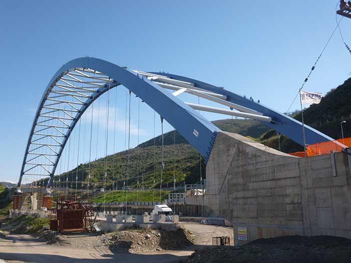 Αυτές τις μέρες ολοκληρώθηκε η τοποθέτηση των 40 αναρτήρων (20 από κάθε πλευρά) και την ερχόμενη εβδομάδα αναμένεται να ξεκινήσει η τοποθέτηση, το μοντάρισμα των μεταλλικών κομματιών του καταστρώματος. Θα ακολουθήσουν η σκυροδέτηση και η ασφαλτόστρωση του καταστρώματος, τα στηθαία ασφαλείας, η σήμανση και τα φώτα.