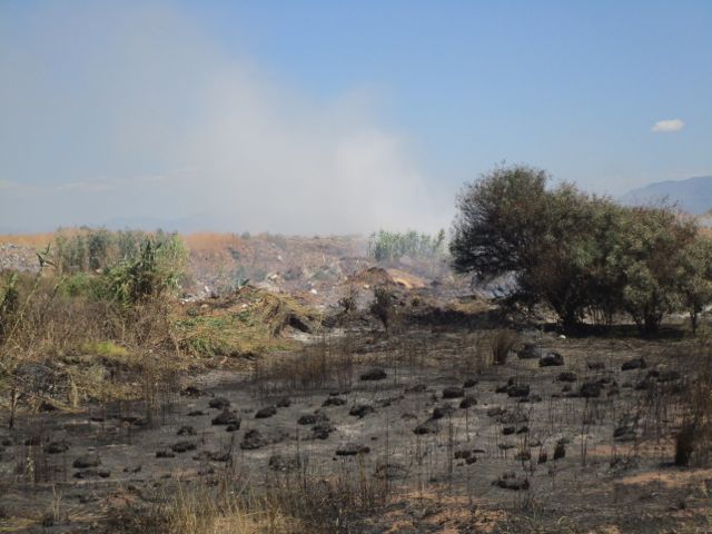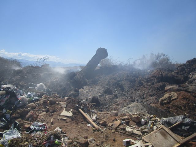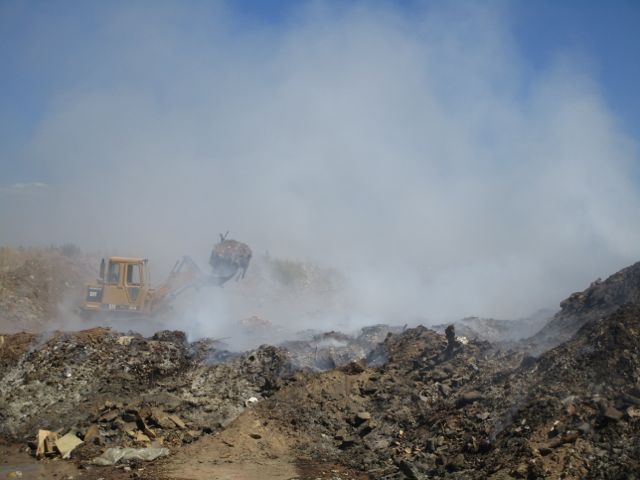 Η χωματερή, όπως επιβεβαιώθηκε και από την εικόνα της, βρίσκεται σε διαδικασία αποκατάστασης. Ομως, η ίδια εικόνα δείχνει ότι η κατάργησή της θα είναι πολύ δύσκολη, καθώς εξακολουθεί να αποτελεί το χώρο εναπόθεσης των σκουπιδιών του δήμου, ενώ μπάζα και άλλα άχρηστα υλικά εναποτίθεντο και χθες, στο δρόμο πρόσβασης στη χωματερή, την ώρα που δινόταν η μάχη για να σβήσουν οι καπνοί.