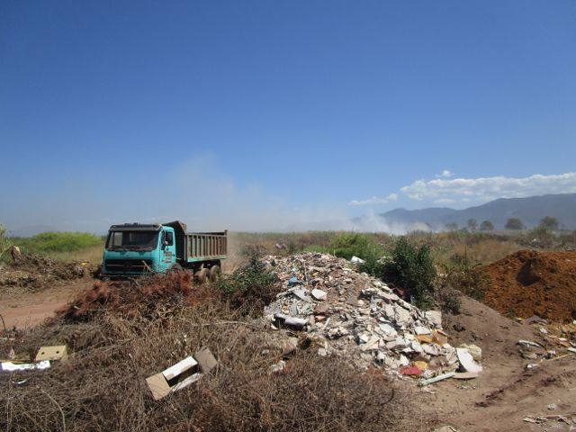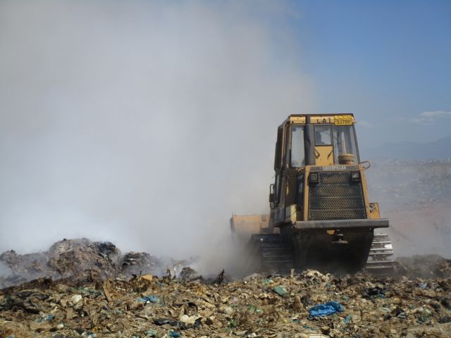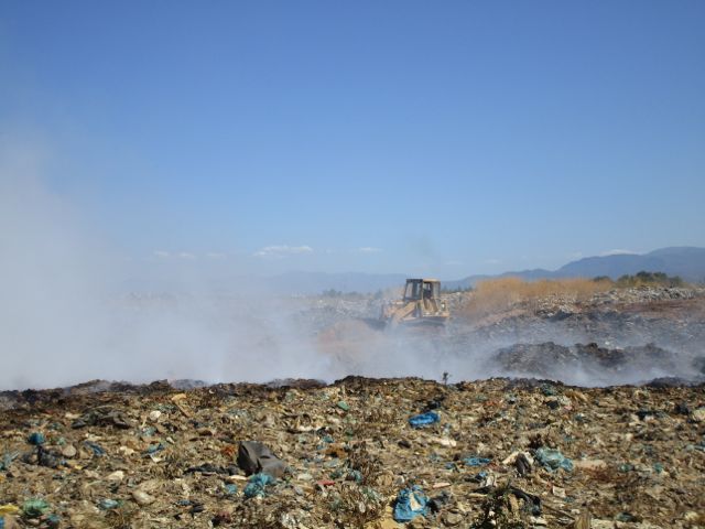 Υπό τις οδηγίες του αντιδημάρχου Κώστα Γεωργακόπουλου, τα φορτηγά έφερναν κι έριχναν χώμα και δύο μηχανήματα έργων -το ένα πολύ πιο εντατικά- σκέπαζαν με το χώμα τους καπνούς που έβγαιναν από τους τόνους σκουπιδιών που καίγονταν.