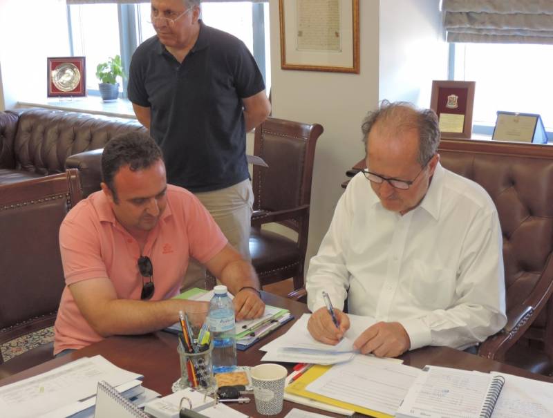 Χθες υπεγράφησαν τα αναγκαία έγγραφα για τους δύο πρώτους οικίσκους από το δήμαρχο Π. Νίκα και τον πρόεδρο του Σωματείου Π. Παπαδόπουλο.