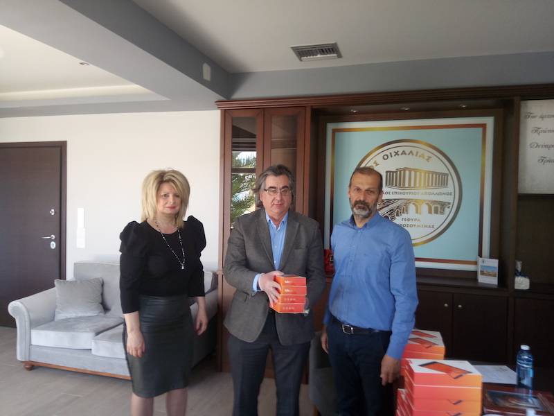 Η δήμαρχος Οιχαλίας Γιώτα Γεωργακοπούλου παρέδωσε την Τρίτη τα τάμπλετ στους διευθυντές των δύο σχολείων, ώστε να εξυπηρετηθούν οι μαθητές της Γ’ Λυκείου που δεν είχαν τον τεχνικό εξοπλισμό να παρακολουθήσουν τα απομακρυσμένα μαθήματα.