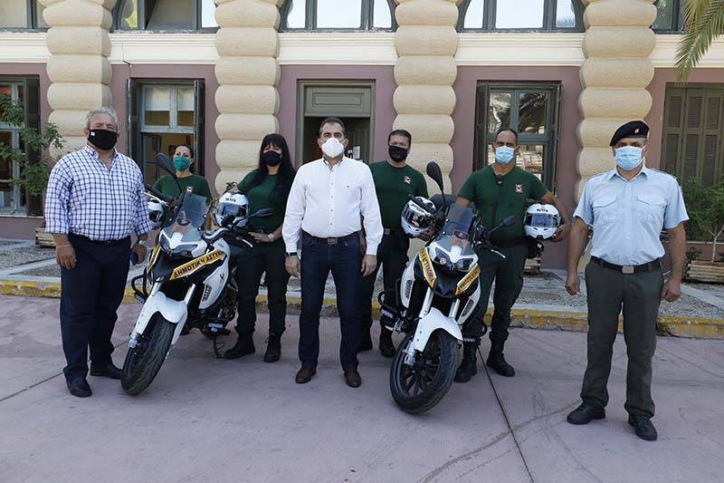 Στη διάθεση των υπαλλήλων της Δημοτικής Αστυνομίας έχουμε 2 ΙΧ οχήματα, ένα ημιφορτηγό 4x4, καθώς και ποδήλατα. Σήμερα ενισχύεται ο στόλος με 2 πλήρως εξοπλισμένες μοτοσικλέτες που θα βοηθήσουν επιχειρησιακά τους δημοτικούς αστυνομικούς”.