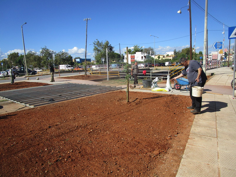 Χθες συνεργείο της Διεύθυνσης Γεωτεχνικών Υπηρεσιών με γεωπόνο και εργάτες,υπό την επίβλεψη του αντιδημάρχου Γιάννη Μπάκα έριχνε ενισχυτικό υλικό για να φυτρώσει το γκαζόν.